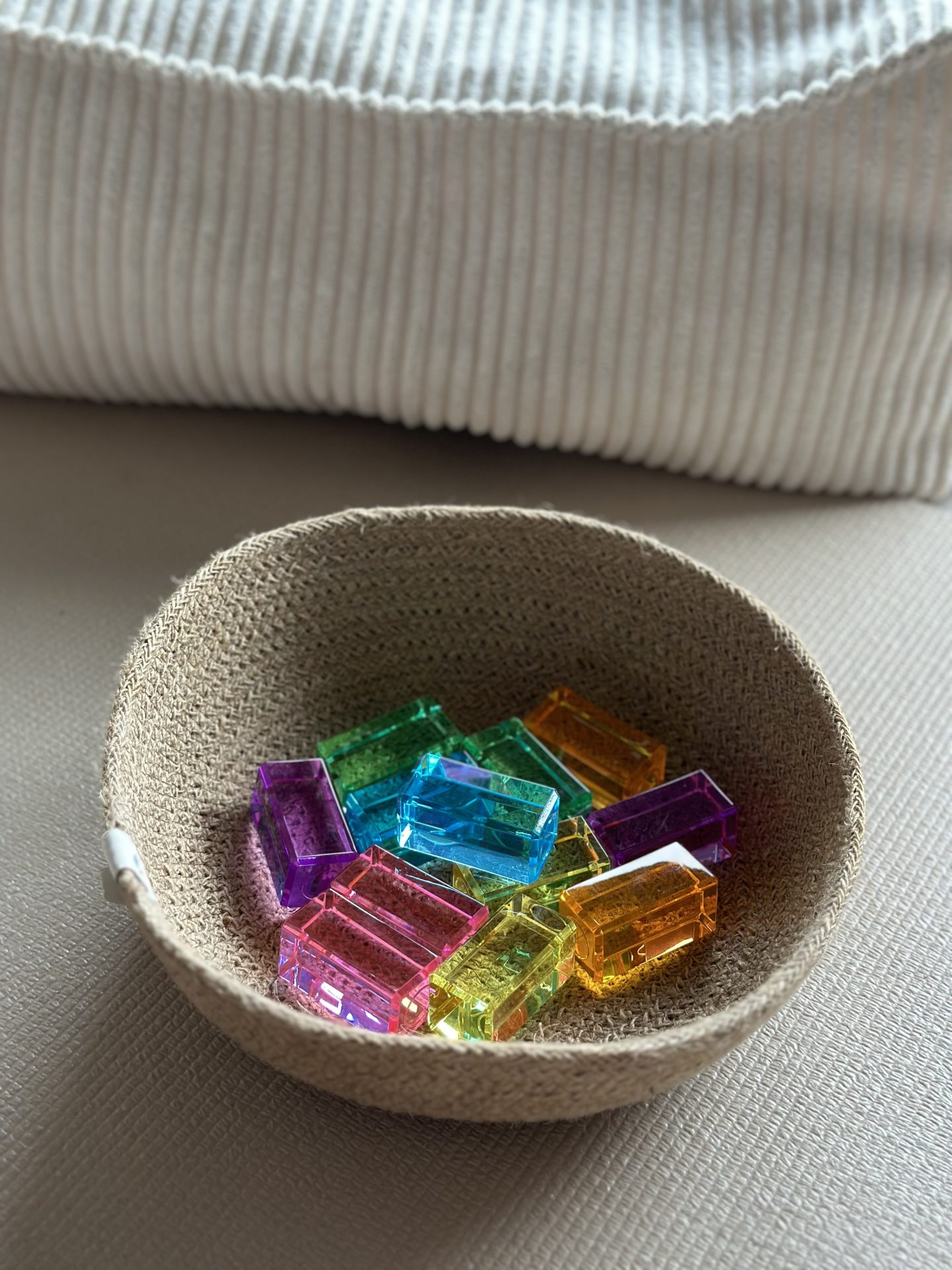 12 db átlátszó akrilhasáb 6 különböző színben.