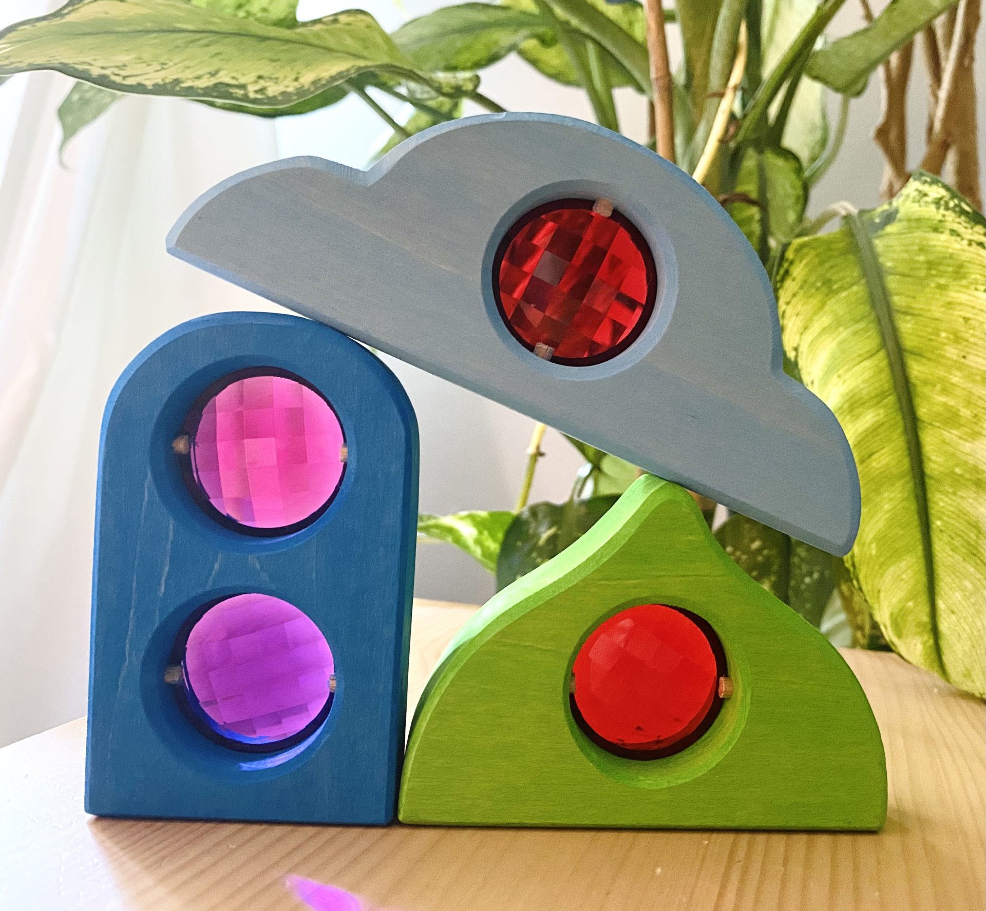 Minden ablakban 1 vagy 2 db átlátszó, csillogó kő található. 3 különböző forma található a készletben, mindegyikből 1 db. Az, hogy pontosan milyen színű és formájú elemeket rejt a csomagod, MEGLEPETÉS, de mindegyik csomagban 3 különböző, varázslatos színű elemet találsz. Bármilyen várat vagy épületet csodálatos kastéllyá változtatnak.
