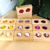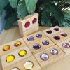 Ebben a szettben 11 db téglatest elem van, amiből 10 db 2-2 csillogó akril követ tartalmaz, 10 különböző színben, egy elem pedig kövek nélküli. Hihetelen csillogásukkal feldobják a játszósarkot, nagy méretüknek köszönhetően remekül jól építhetők. Égerfából készültek, amit olajjal zártak.