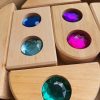 Minden ablakban 1 vagy 2 db csillogó kő található, a kövek az elemek egyik oldaláról látszanak. 6 különböző forma található a készletben, mindegyikből 2 db. Igazi mesekastéllyá varázsol bármilyen épületet