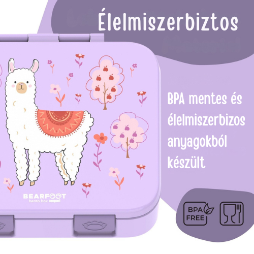A BEARFOOT Bento Box COMPACT nagyobb, 1000 ml-es kapacitással ideális iskolai ebédhez, kirándulásokra vagy akár felnőtteknek is. A három rekesz és a külön szószos tégely segít a változatos étkezések összeállításában.