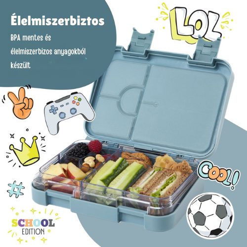 A doboz több rekesszel rendelkezik, így az ételek szeparáltan, frissen és gusztusosan maradnak – nincs többé összekeveredett gyümölcs és szendvics! 🍎🥦