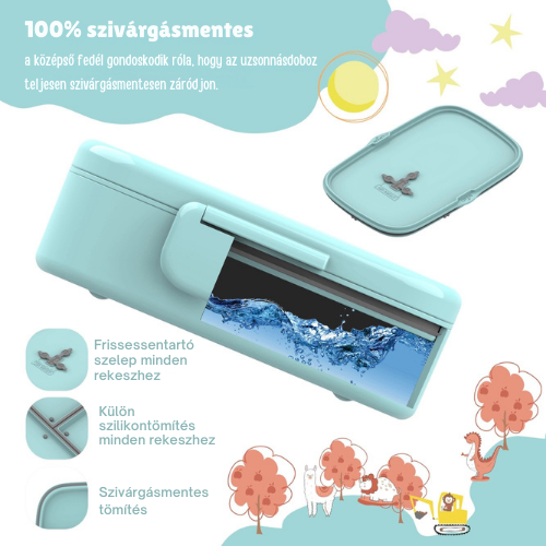 - Külön szilikontömítés minden rekeszhez 🧩 – az ételek nem keverednek össze, minden falat a helyén marad.