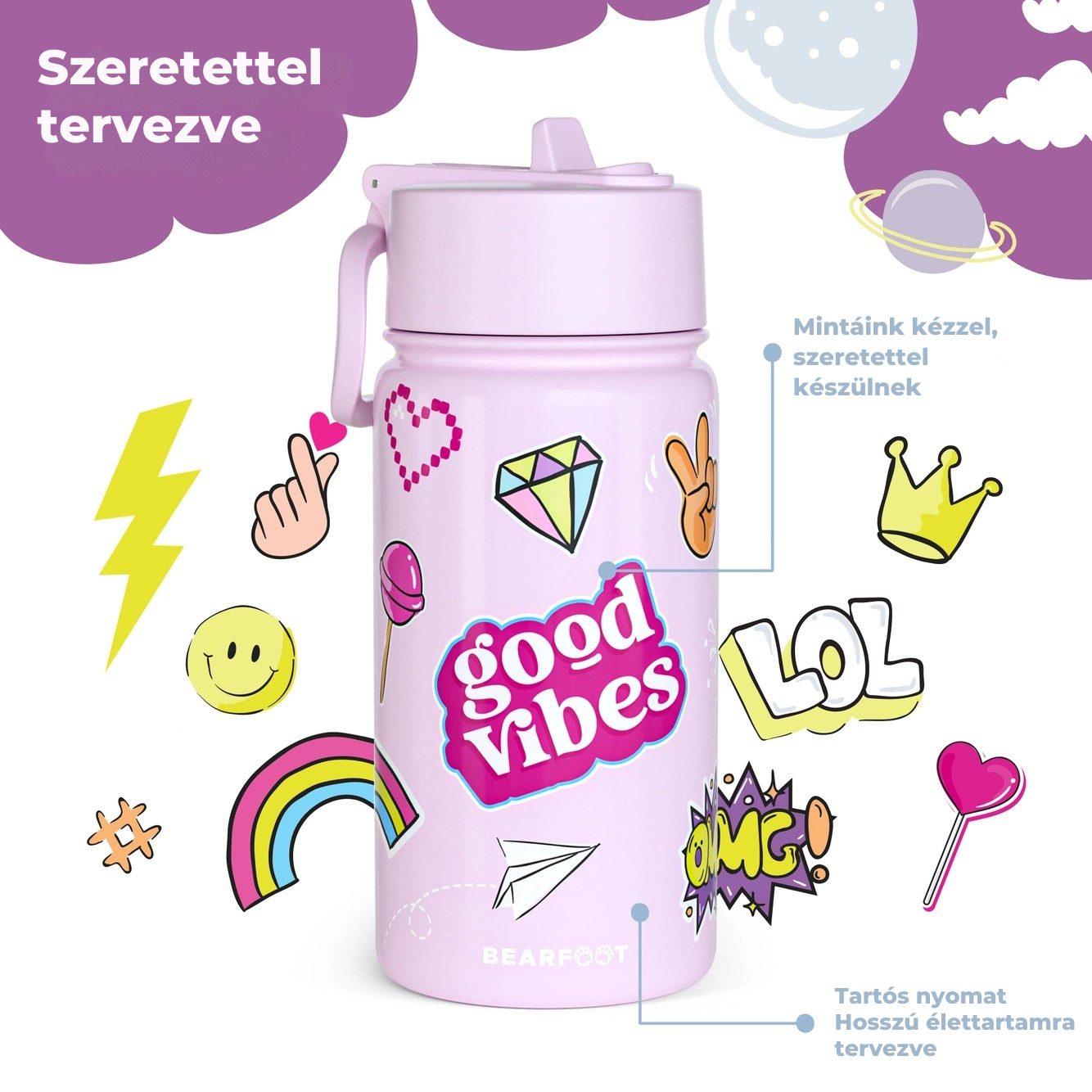 Vidám mintás gyermekpalack 🛼💜