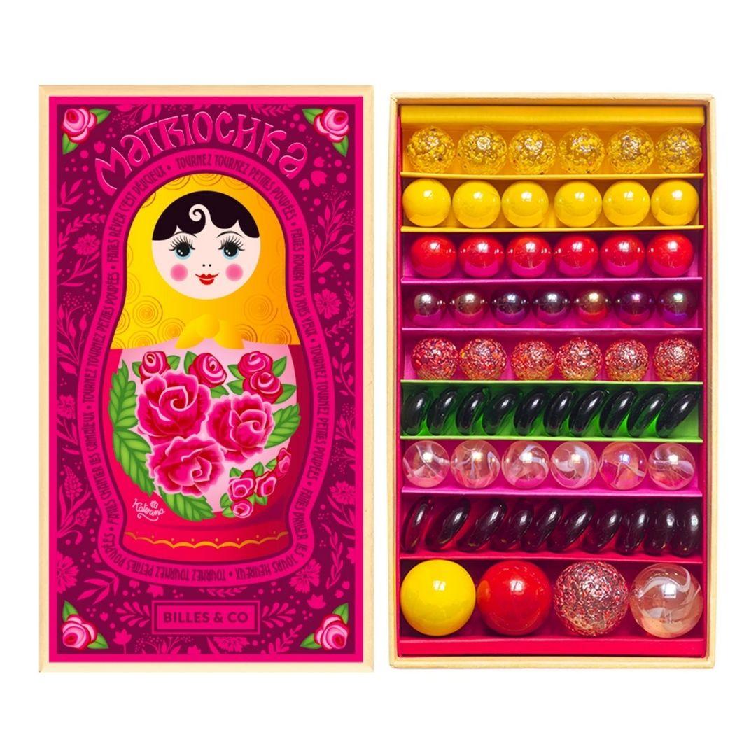 Billes & Co – Matrjoska Katerina üveggolyó készlet (61 db) – A színek, minták és mesék világa