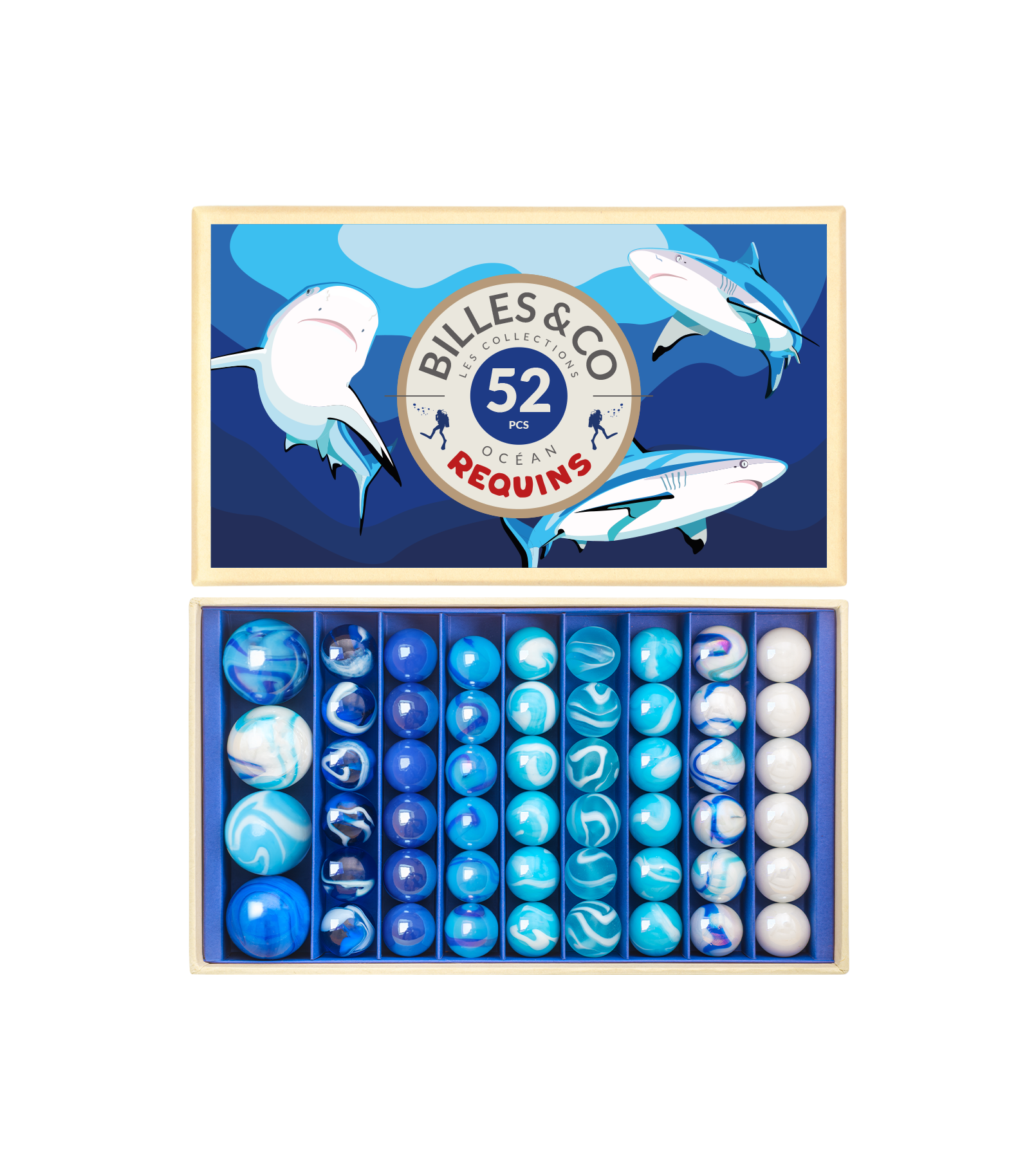🦈 Billes & Co – Sharks üveggolyókészlet (52 db)