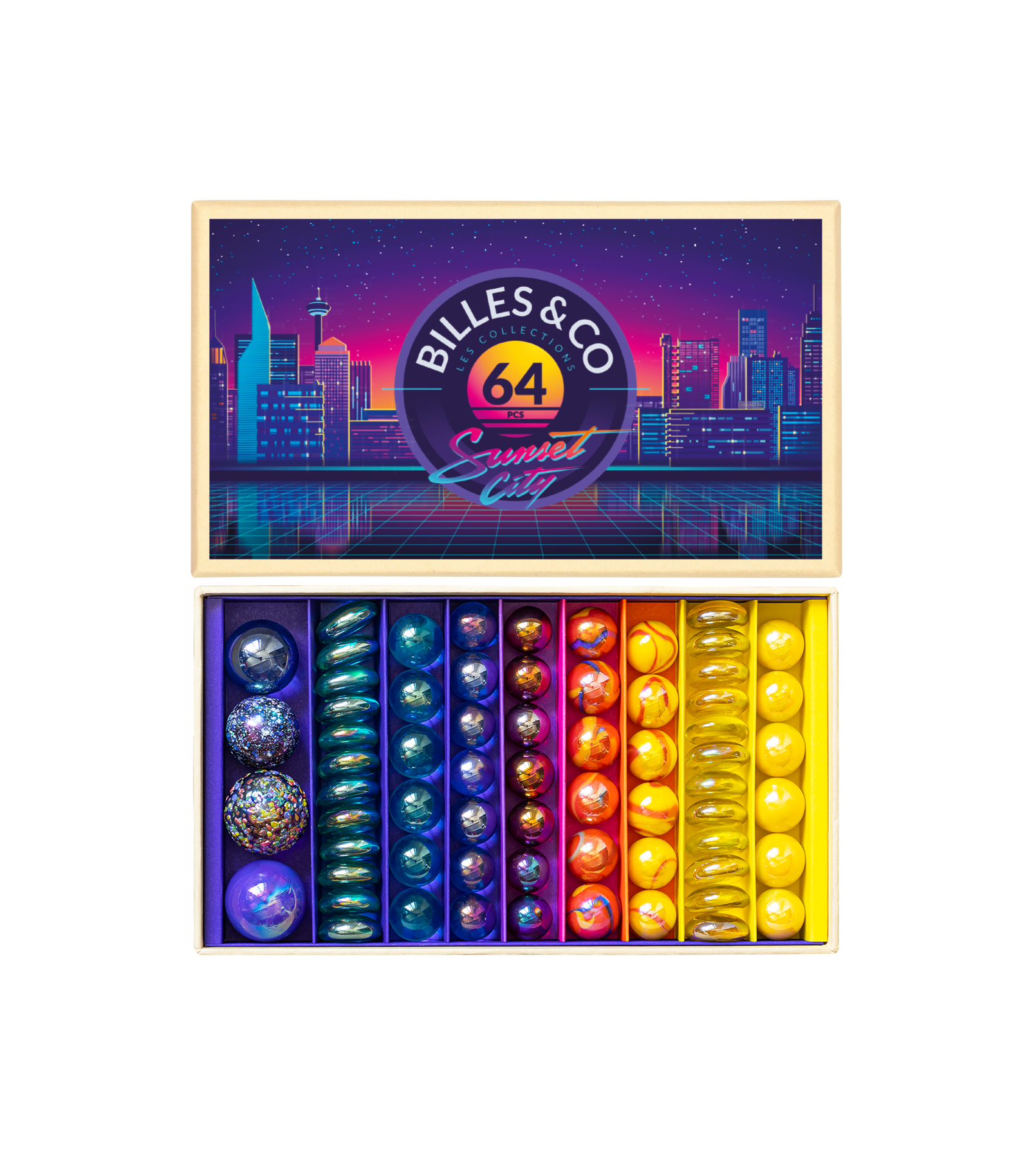 🌇 Sunset City üveggolyókészlet – Egy naplemente, ami örökre velünk marad