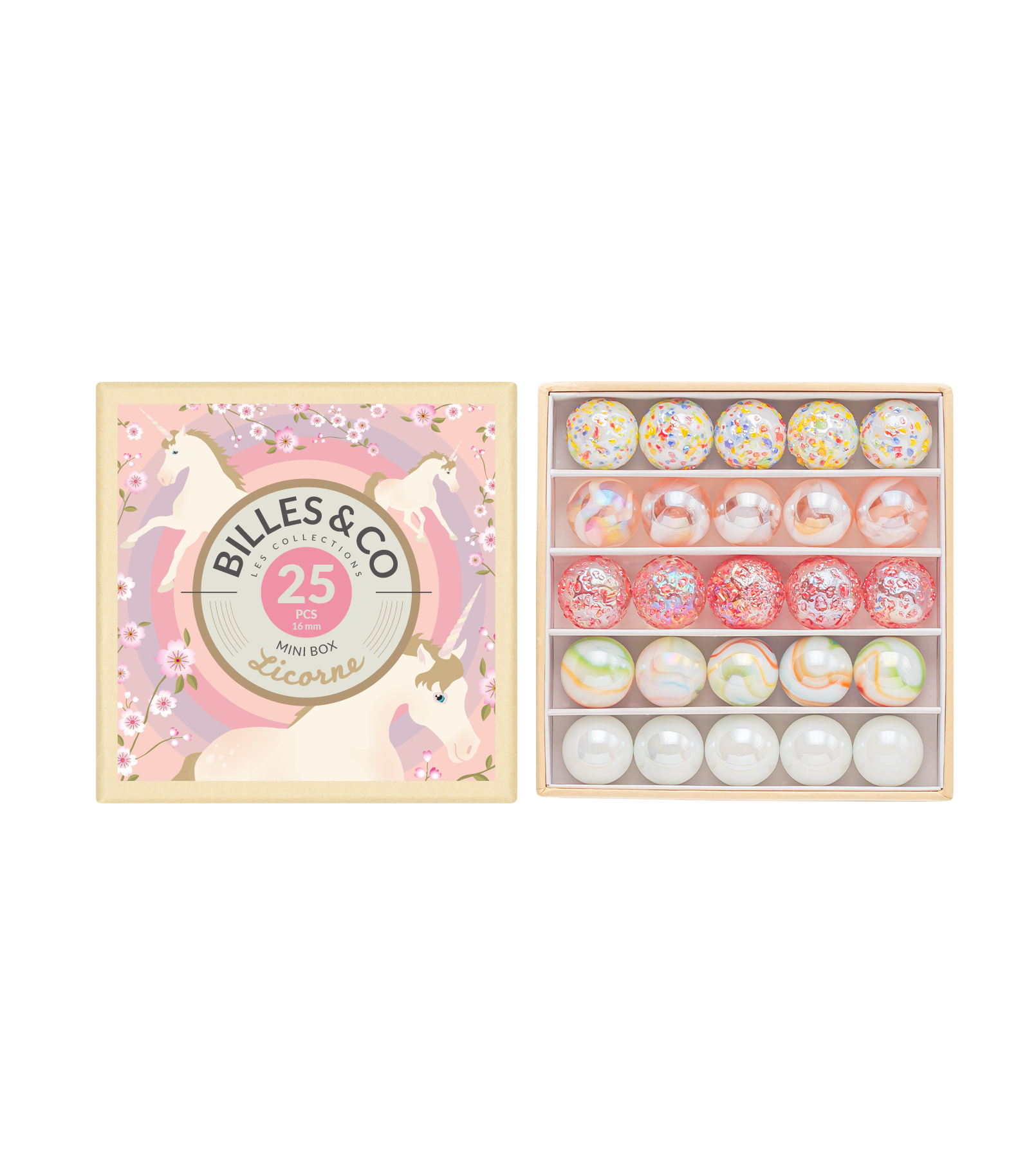 Fedezd fel az üveggolyók tündéri világát az Unikornis készlet segítségével, amelyet a világ legritkább unikorniscsordája ihletett! A 25 darab csillogó, pasztellrózsaszín, hófehér és aranyló árnyalatú üveggolyó egy olyan varázslatos univerzumba repíti gyermekedet, ahol a képzelet határtalan.