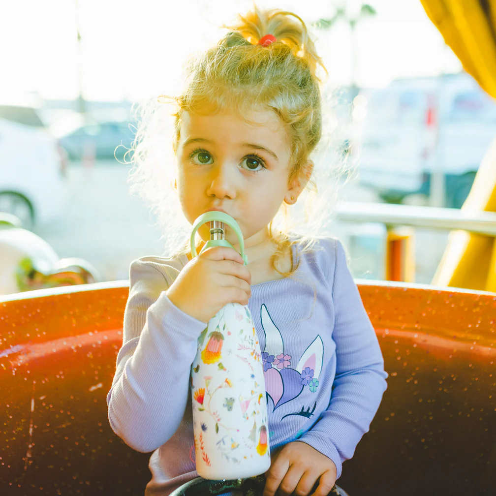 A Cool Bottles Kids kulacs két különböző kupakkal érkezik, hogy a gyerekek mindig a legkényelmesebb módon használhassák.