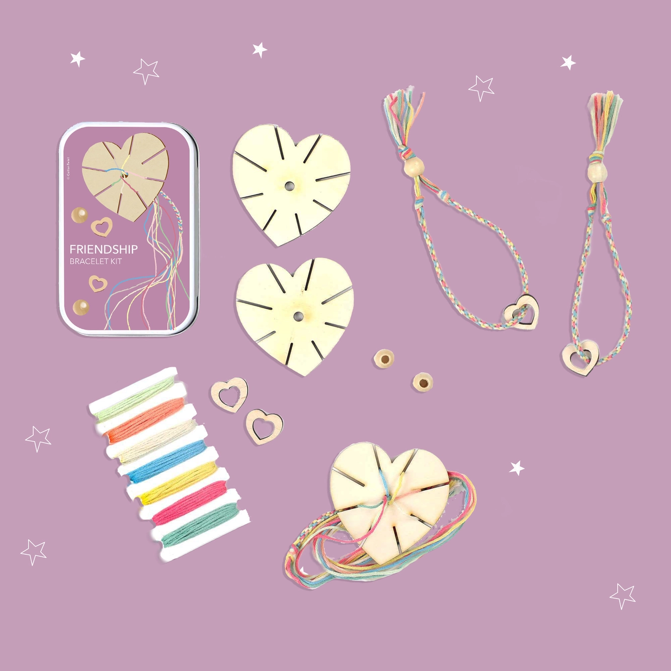 Ez a szívhez szóló barátság karkötőkészítő készlet egy különleges kreatív élményt kínál anya és lánya, testvérek vagy legjobb barátnők számára. A szettben található két különböző méretű fa szív charm és pasztell színű fonalak lehetővé teszik, hogy személyes jelentéssel bíró barátságkarkötőt készítsetek – együtt.