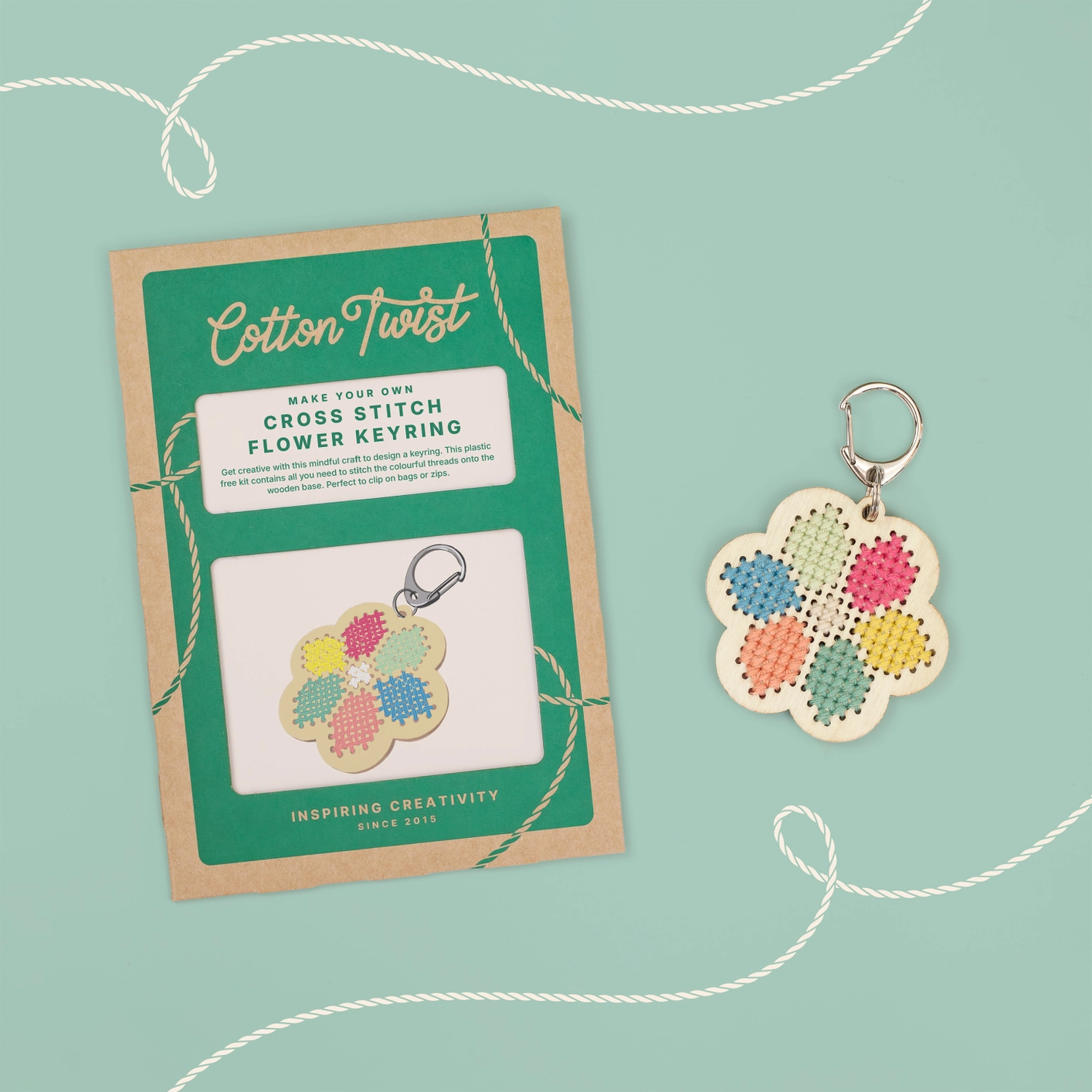Ez a keresztszemes hímzéses kulcstartókészítő készlet ideális művészi időtöltést kínál kicsiknek és nagyoknak egyaránt. A csomagban található egy masszív fa virág formájú kulcstartóalap, pamutzsinórok és egy fém hímzőtű – mindez műanyagmentes, újrahasznosítható csomagolásban érkezik.
