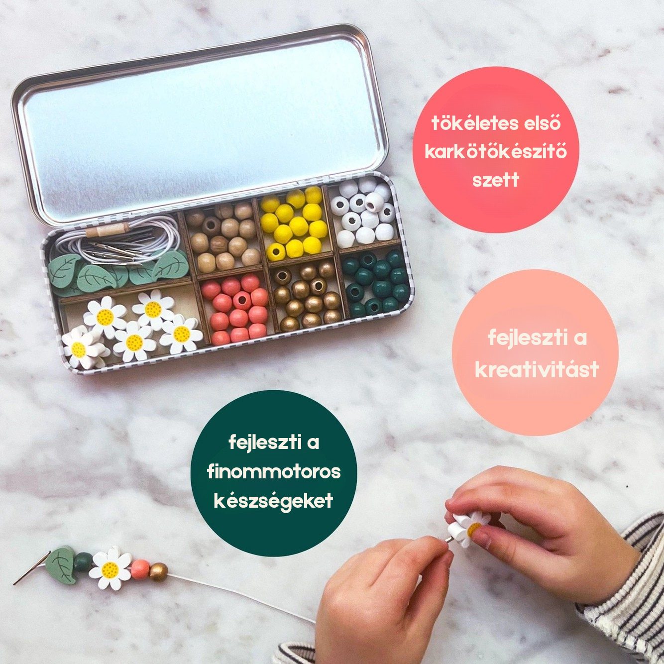 🌼Százszorszép karkötőkészítő készlet – alkossatok virágos csodákat együtt!