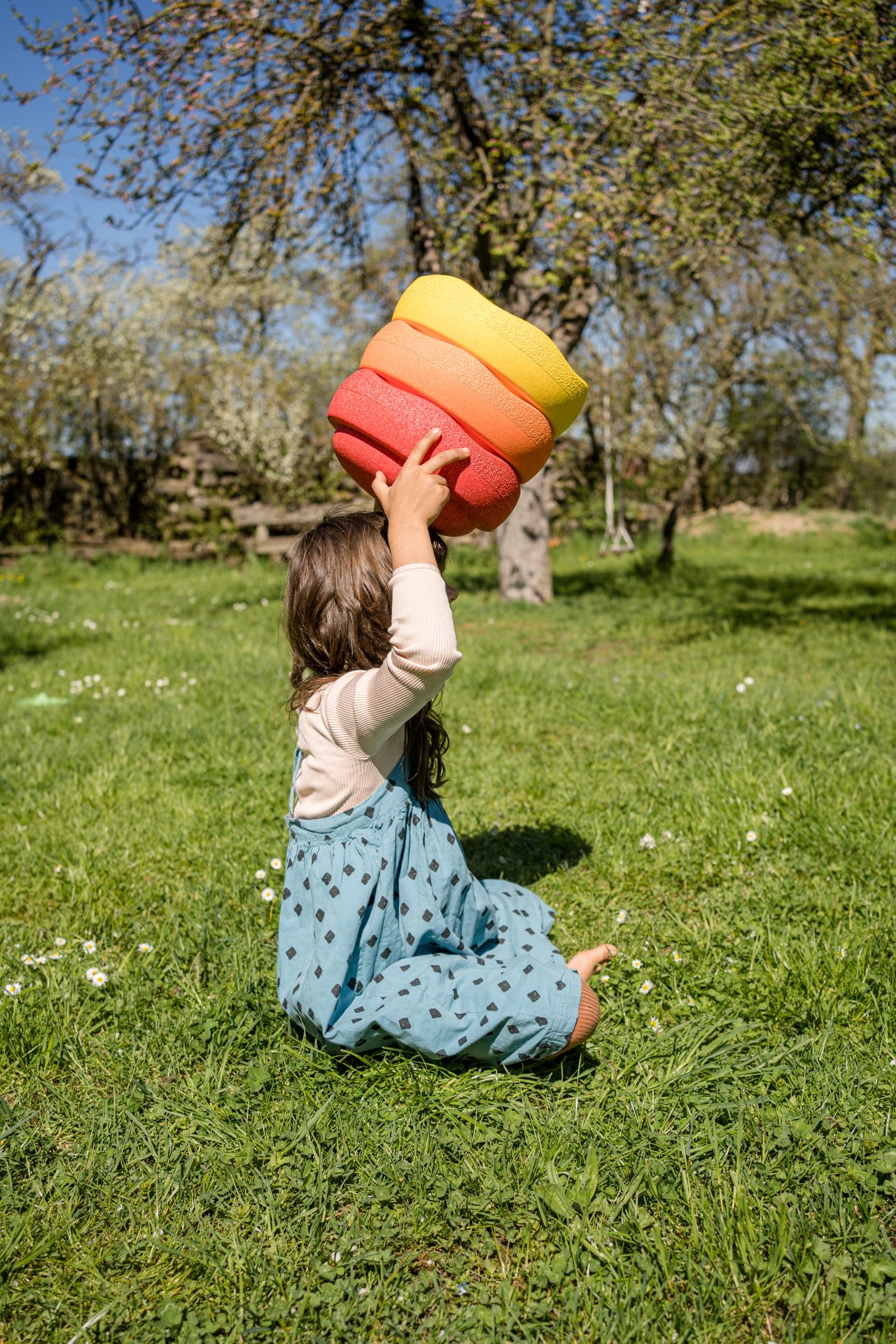 A környezetünk iránti tisztelet és felelősségtudat minden döntésünkben (és cselekedetünkben) elkísér bennünket – vállalkozói és magánéleti szempontból egyaránt. Meggyőződésünk, hogy a helyi klímasemleges és szennyezőanyag-mentes gyártás Németországban ugyanolyan fontos, mint egy termék hosszú távú használhatósága. Gondoskodunk arról, hogy a Stapelstein® termékek mozgás-, játék- és dizájnelemként időtlen megjelenésűek, tartósak és 100%-ban újrahasznosíthatóak legyenek. A Stapelstein® nemileg semleges és korhatárokon átívelő játék. Termékeink erőforrás-takarékos EPP-ből (expandált polipropilénből) készülnek, Németországban gyártják, és kizárólag tiszta levegővel és gőzzel gyártják – lágyítók, adalékanyagok vagy egyéb anyagok nélkül.
