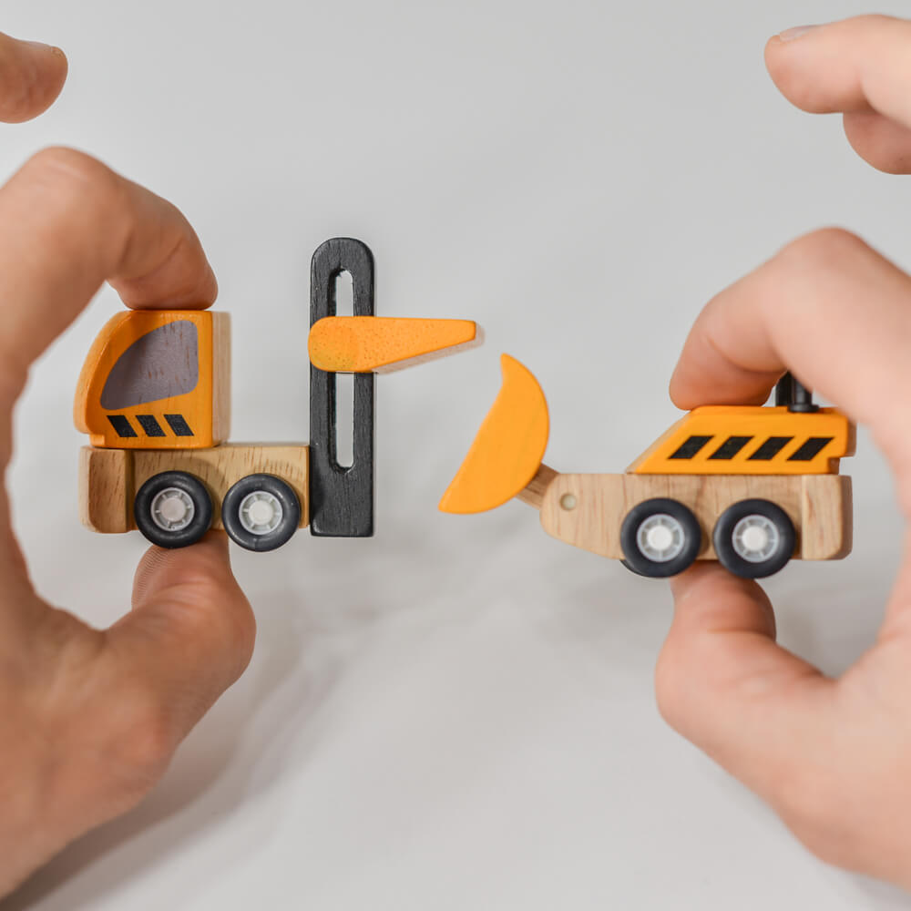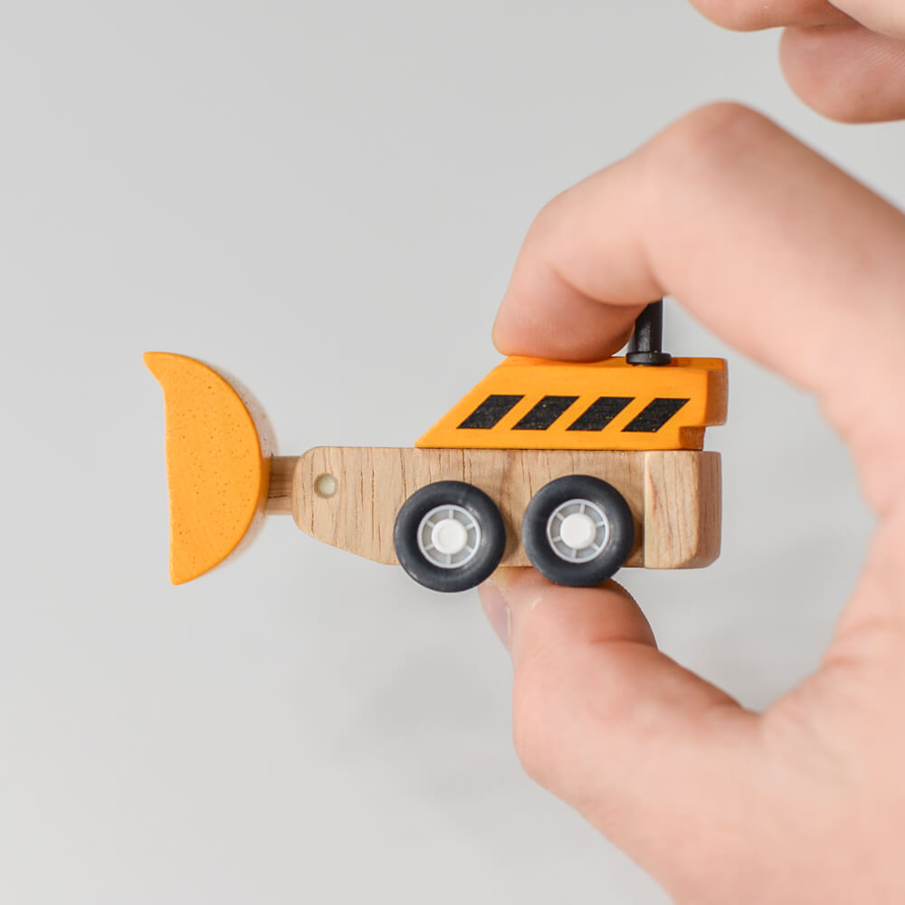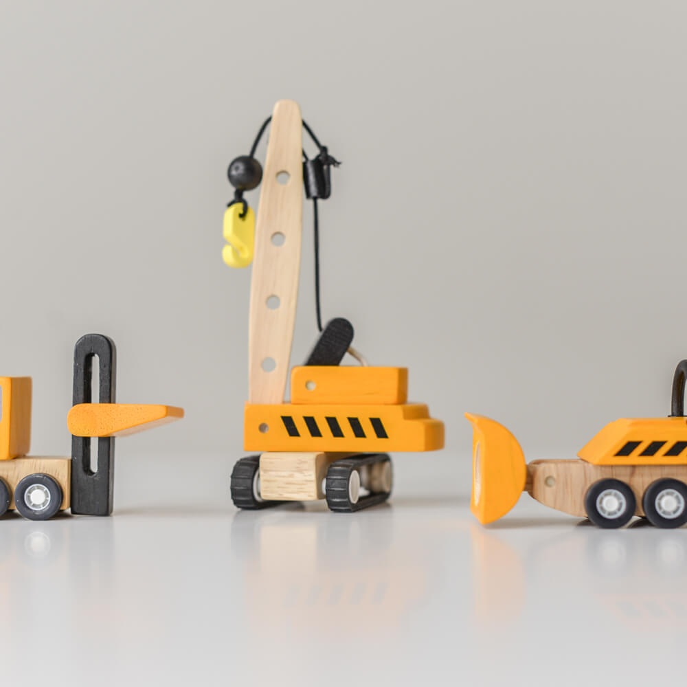 Szorgosan dolgoznak a munkagépek az építkezéseken! A tömörfa és PlanWood* egyedi kombinációjával tervezett autó serkenti a gyermek fantáziáját, és segít a finommotoros készségek és a szem-kéz koordináció játék általi fejlesztésében.