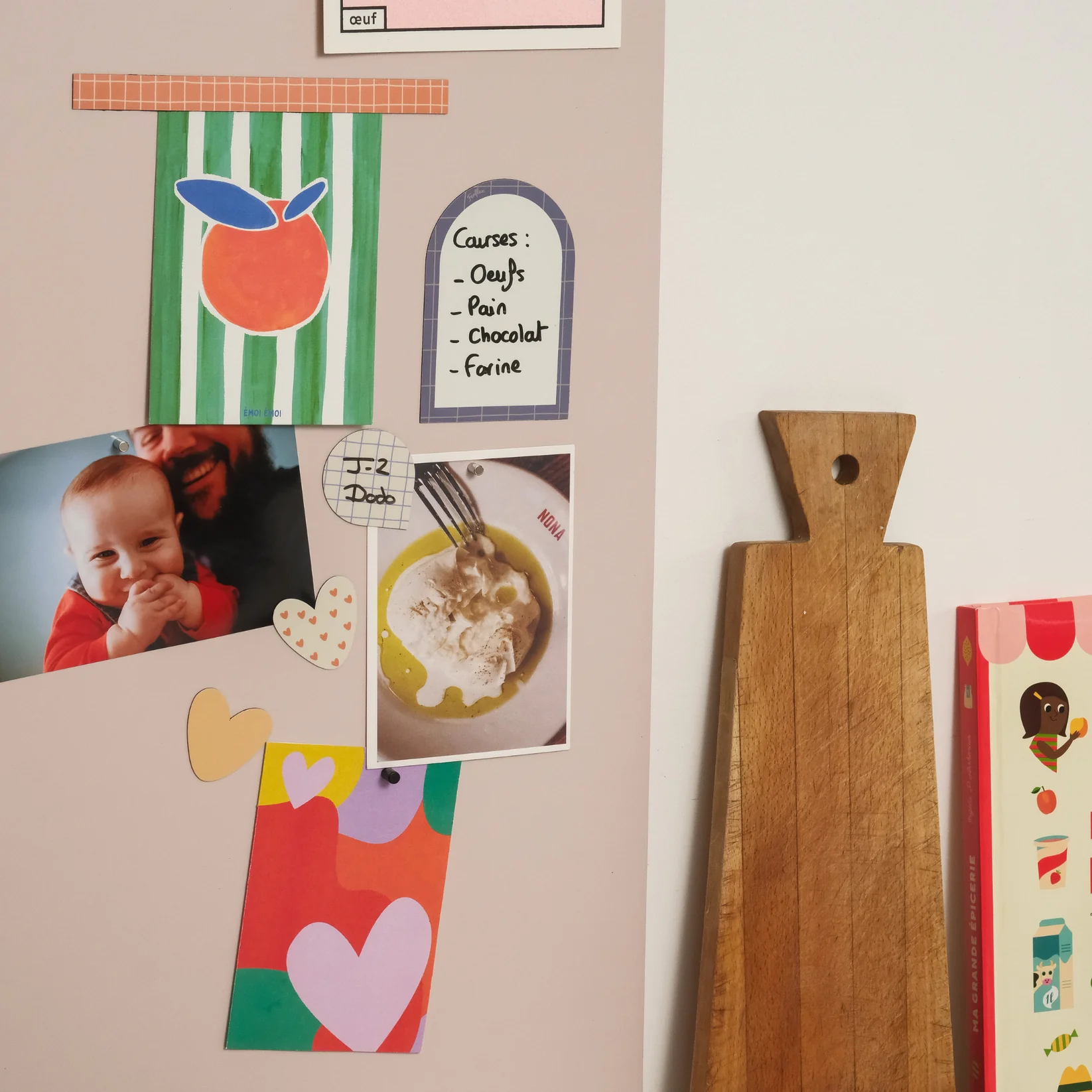 Színes, íves mágneses falitapéta-készlet, amellyel dekoratív és funkcionális mágneses központot hozhatsz létre a falon — a gyerekszobától a nappalin át a közös családi térig. Tökéletes fényképek, jegyzetek, mágnesek vagy dekor elemek megjelenítésére fúrás nélkül. 🇫🇷🖼️✨