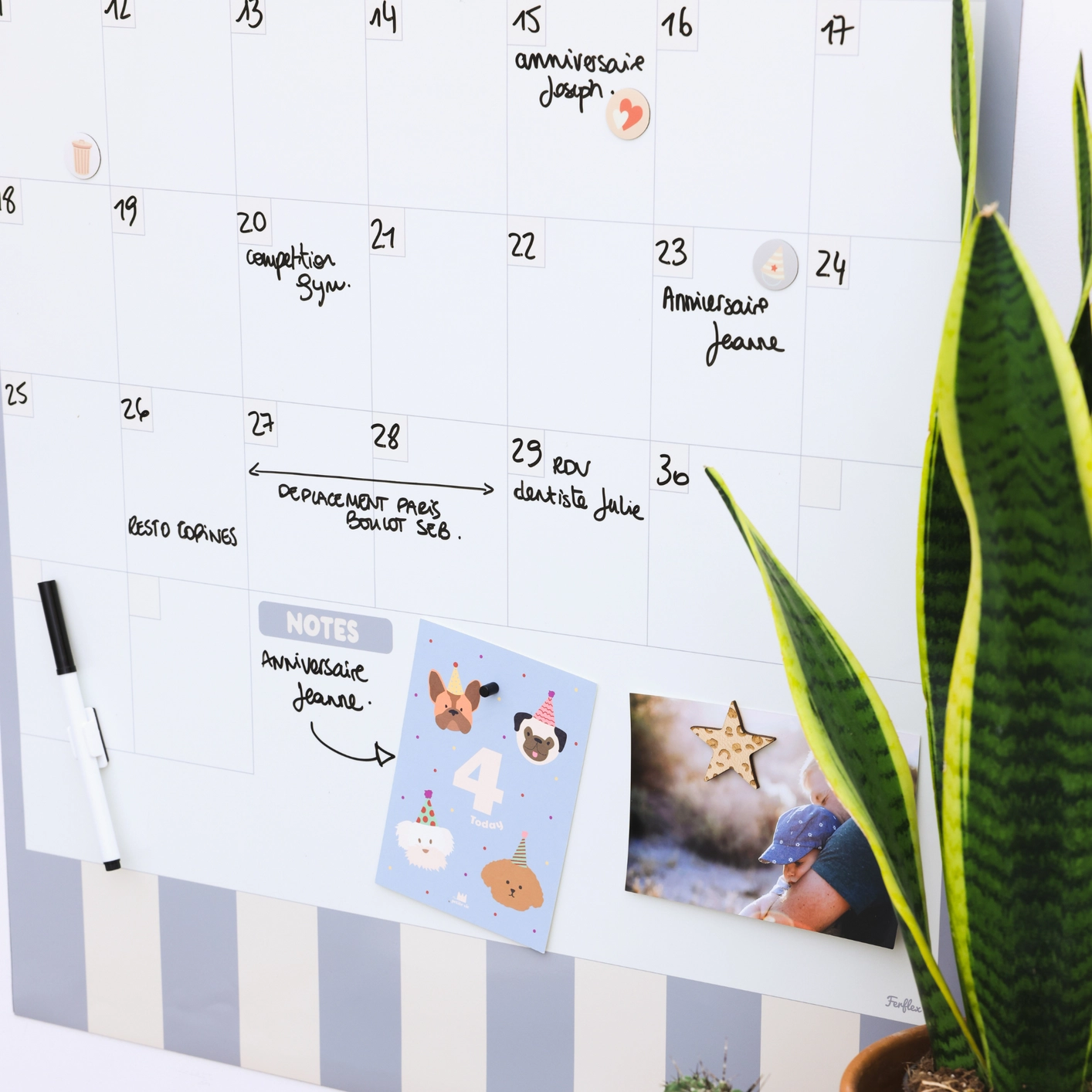 Az öröknaptár vizuális segítséget ad a mindennapi tervezéshez: egyetlen pillantással átláthatók a havi események, határidők, programok és feladatok. A mágneses kialakítás lehetővé teszi, hogy a naptárt hűtőn, mágneses táblán vagy mágneses tapétán használd, illetve hogy jegyzeteket, piktogramokat vagy mágneseket rendezz rajta tetszés szerint.