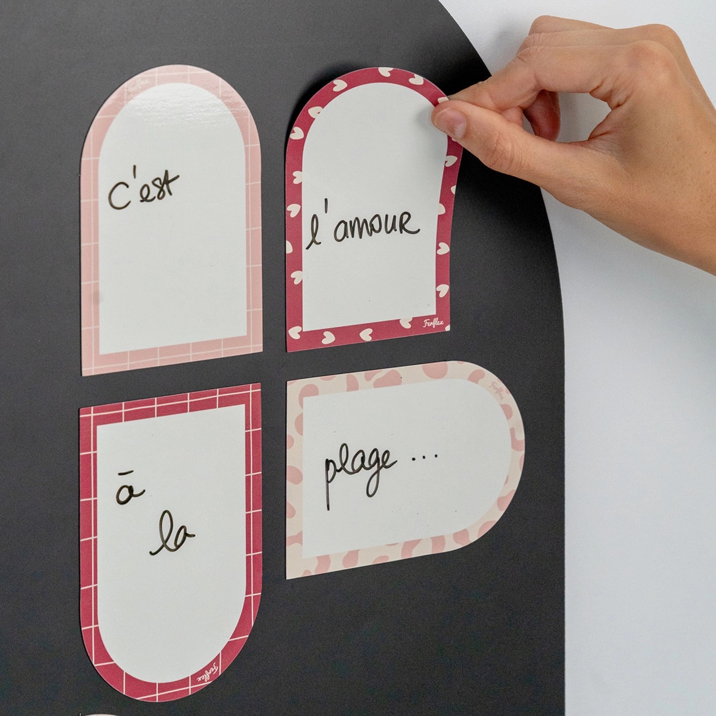 A jegyzetek mágneses hátoldalának köszönhetően könnyedén rögzíthetők hűtőre, mágneses táblára vagy mágneses tapétára. Írj rájuk, töröld le, majd használd újra – így fenntartható alternatívát jelentenek az egyszer használatos papírcetlikkel szemben.