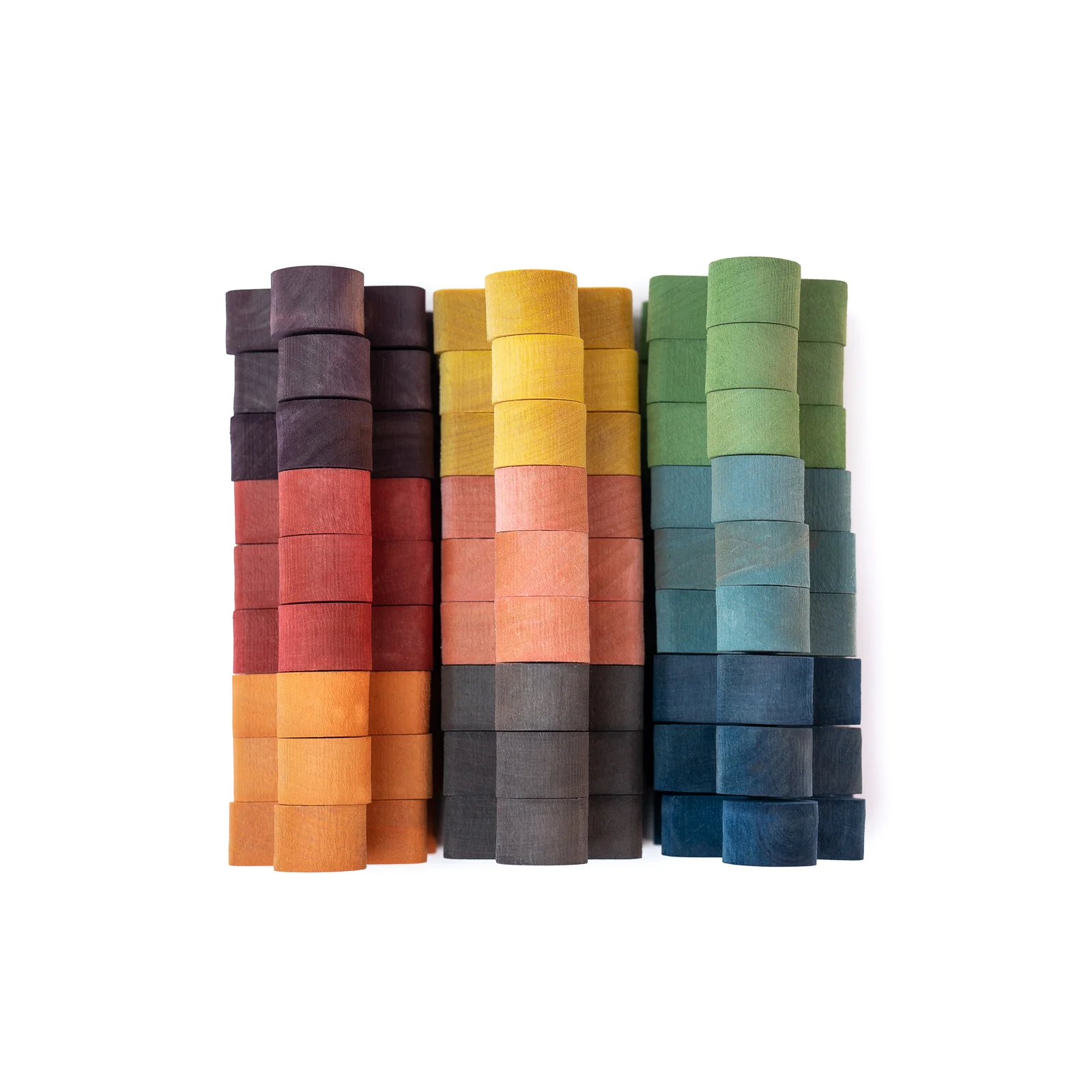 A Colored Flockmen (27 darabos készlet) fantasztikus lehetőséget kínál a színfelismerés, kreativitás és játékos tanulás ötvözésére. Ebben a készletben 9 különböző élénk szín (piros, narancs, sárga, zöld, kék, lila, rózsaszín, szürke és tengerészkék) szerepel, 3–3 darab figurával összesen 27 darab játékban. Ezek a natúr fafigurák gondosan festettek, vízbázisú festékkel – biztonságosak, strapabírók, és gyönyörűen élénk megjelenést nyújtanak a játékban.