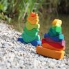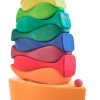 9 db halacska és egy csónak a szivárvány színeiben. A hagyományos toronyépítők izgalmas kiegészítője. A felülete érdesebb, nem csúszós, így kiválóan építhető, pakolható.