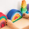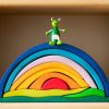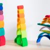 Vízbázisú festékkel színezett, a fa erezete gyönyörűen átlátszik a színek mögött. Kérlek vedd figyelembe, hogy a fa természetes anyag, csodásan változatos, így a mintázata eltérő lehet. A felülete érdesebb, nem csúszós, így kiválóan építhető, pakolható.
