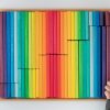 64 darabos lapos elem a szivárvány színeiben, 5 különböző méretben.