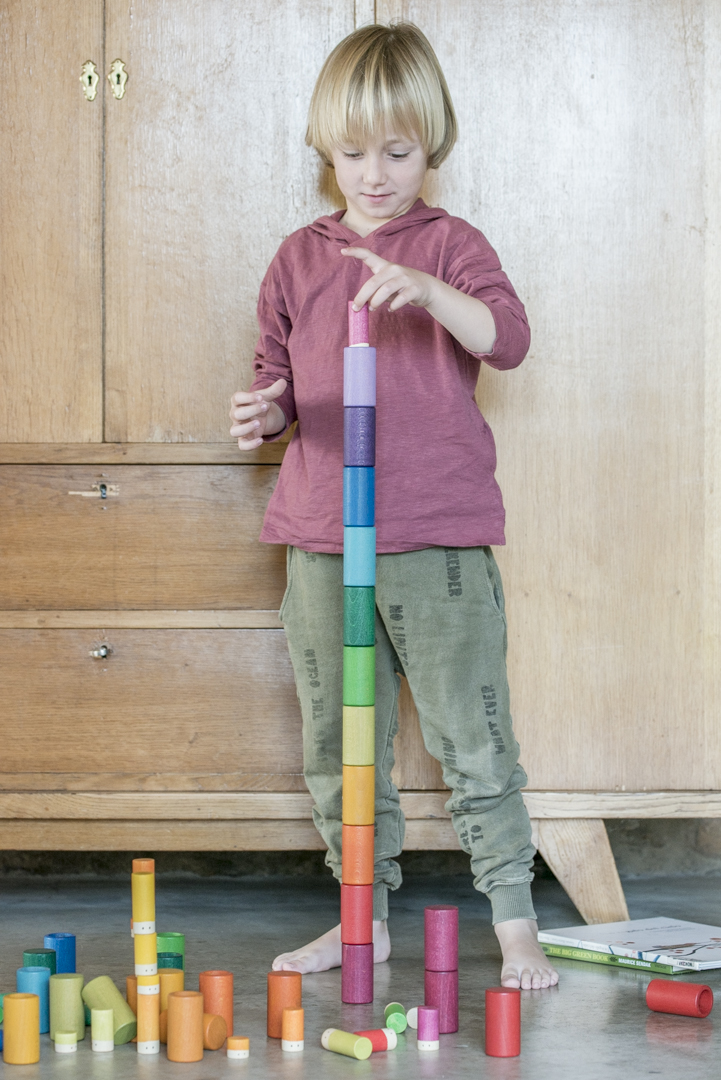 Ez a 72 darabból álló készlet a sokoldalúságot és a sokféle játéklehetőséget részesíti előnyben a kreatív gondolkodás mellett. A különböző típusú tálkák a szem-kéz koordináció fejlődést segítik, használhatjátok őket távcsőkéntvagy építmények, képzeletbeli világok létrehozására, lehet egyszer fa, máskor épület vagy autó. A logikai-matematikai gondolkodás fejlesztését is lehetővé teszi az elemek oszortírozása, csoportosítása és társítása az azt alkotó elemek színe vagy formája szerint. .