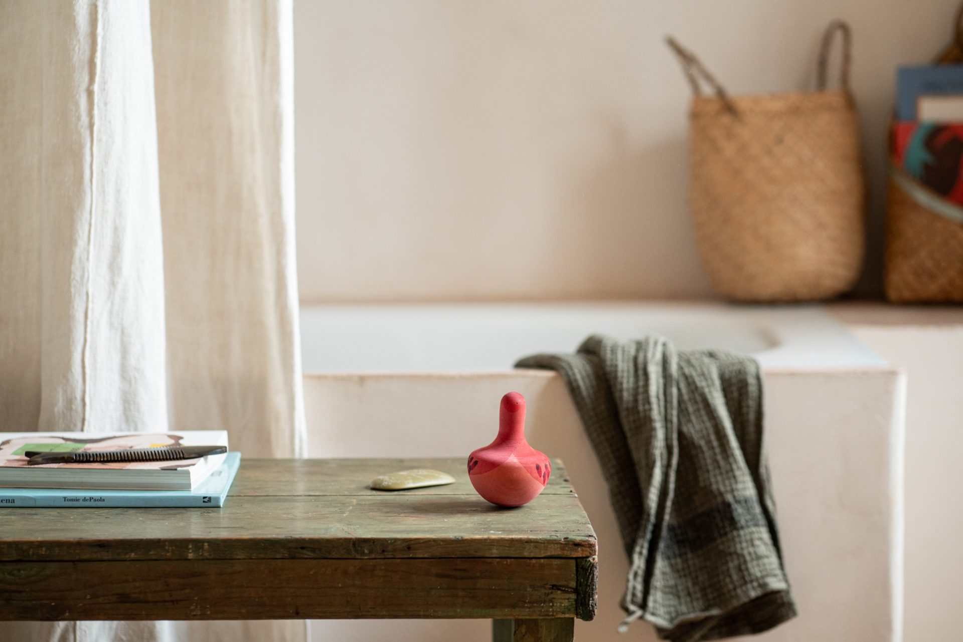 Kézzel készült Spanyolországban, természetes fából, vízbázisú festékekkel és méhviasz alapú felületkezeléssel, teljesen biztonságos a kis kezek és szájacskák számára is. A játék minden íve, színe és mozdulata a gyengédség és minőség jegyében született.