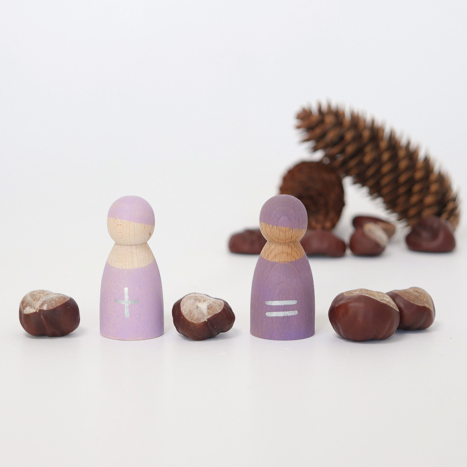 Az 5 jóbarát segít megismerkedni a matematikai műveletekkel játékos módon. Gyűjtsetek terméseket, virágokat, vagy használjátok más jétékok elemeit a matematikai múveletek megértéséhez. Az 5 jóbarát mindegyikére 1-1 műveleti jel van festve: összeadás, kivonás, osztás, szorzás, egyenlőség.