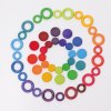 24 db gyönyörű fa gyűrű szivárványszínekben. Szortírozáshoz, építéshez is szuperek, de használhatjátok őket mandalázáshoz vagy építmények kiegészítőjeként. Szuperül passzol a Grimm’s kis és nagy fagolyókhoz.