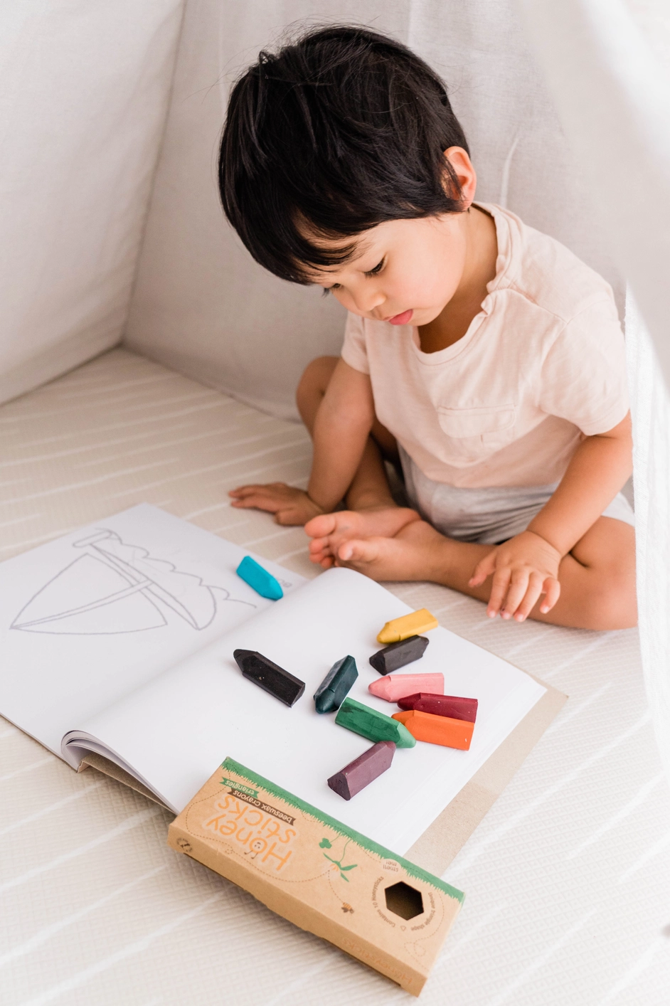 A méhviaszkréták természetes illata, gazdag színei és puha, krémes rajzolási élménye teljesen eltér minden hagyományos krétától. Még akkor is biztonságos, ha a gyermek az ujját vagy a krétát a szájához teszi.