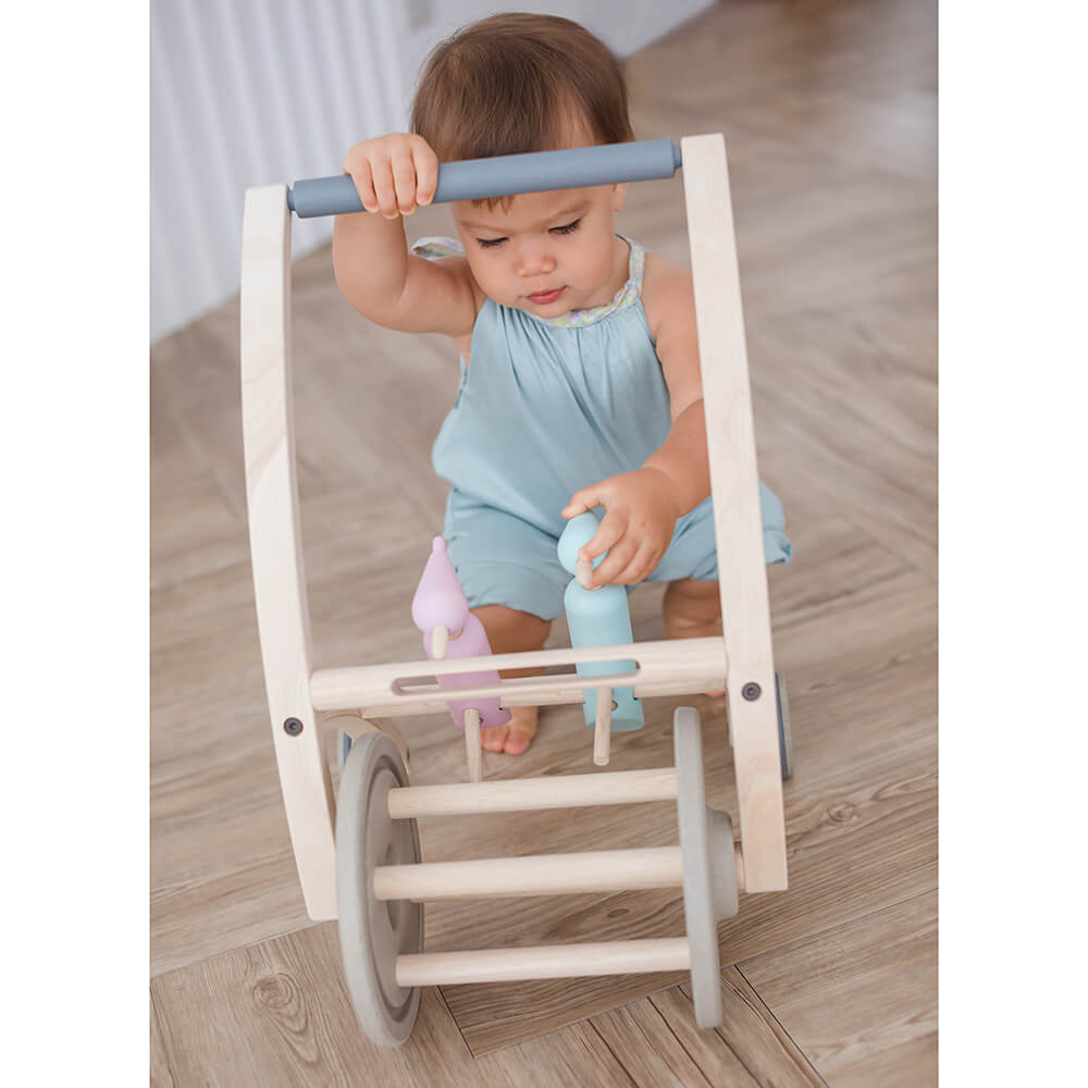 Mozgatás közben a madarak kellemes, egyedi, kopácsoló hangot hoznak létre, ami ösztönzi a kicsiket sétára.