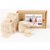 Ebben a szettben összesen 336 db elem található, 4 különböző formában. Mindegyiket úgy alakították ki, hogy segítse (és túlélje) a gyermekek motoros képességeinek fejlődését. A “csak kockákból” való építés teret enged a gyerekek fantáziájának, fejleszteve a finommotorikus készségeket, a szem-kéz koordinációt és a kézügyességet.