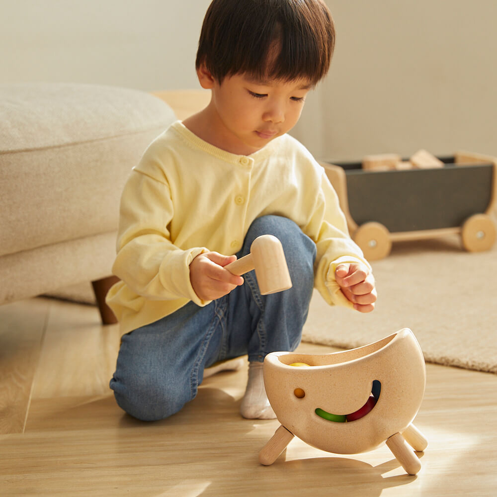 Minden alkalommal, amikor a labdát a mellékelt fakalapáccsal eltalálod, egy új labda pattan fel a helyére!