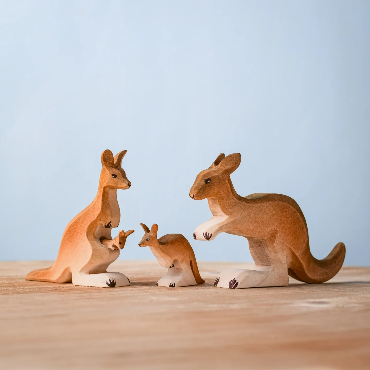 Kenguru Család Szett – Kézzel készült, természetközeli játék három fafigurával