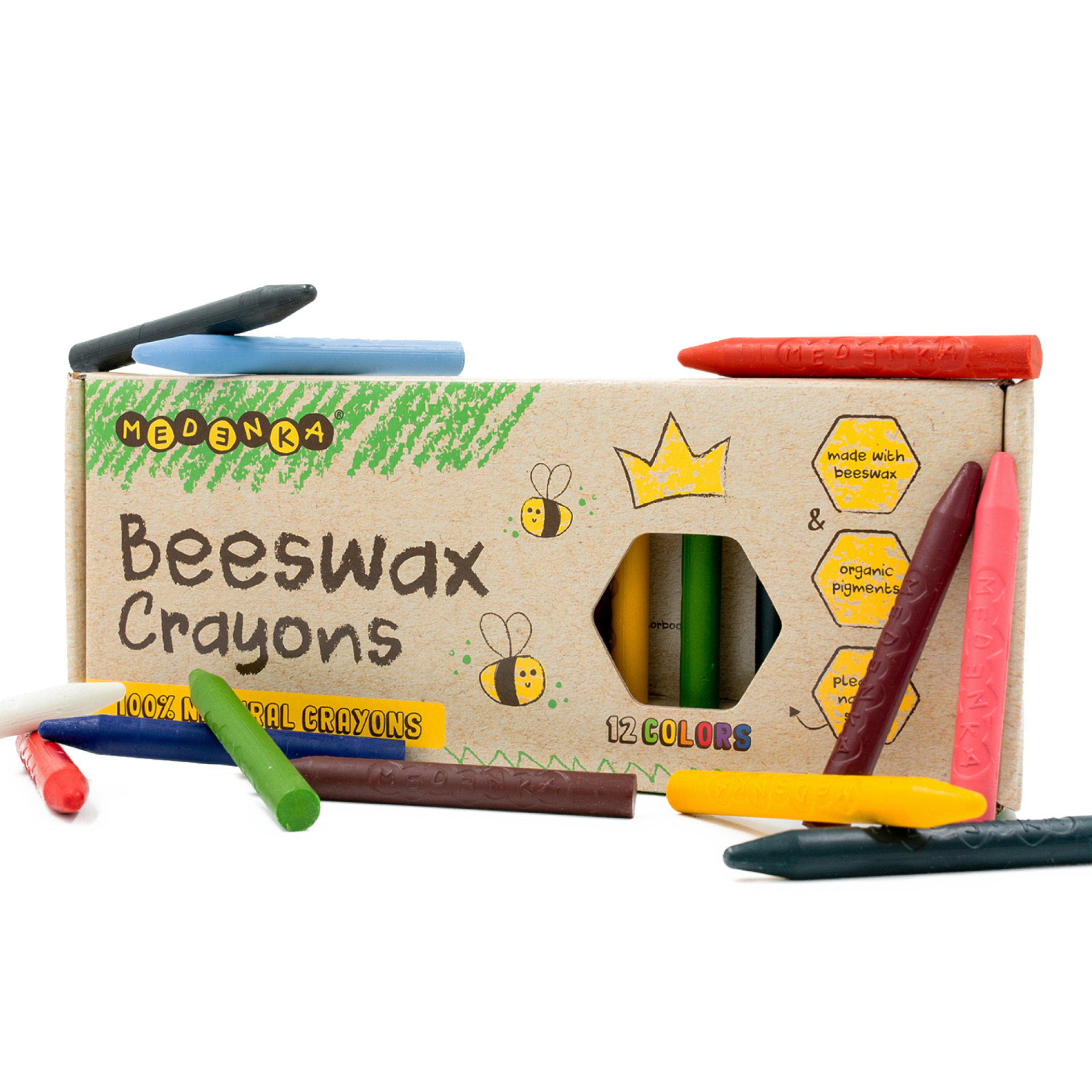 A méhviasz a méhészkedés természetes mellékterméke; a Medenka ennek felelős felhasználásával készít hosszú élettartamú, kellemes tapintású krétákat. Nincs papírborítás, nincs felesleges hulladék – csak tiszta anyag és örömrajzolás. A kréták természetes összetevőik révén bőrrel érintkezve is kíméletesek.