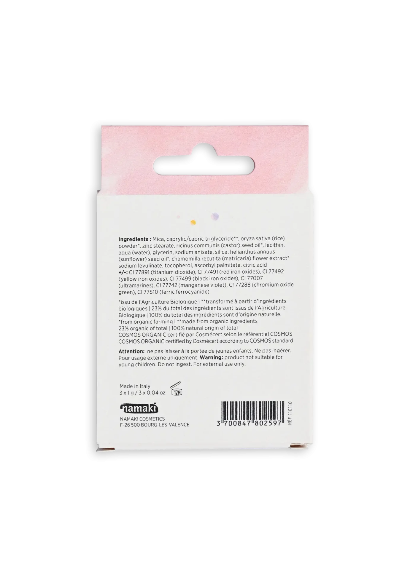 A Namaki NYÁR szemhéjfesték paletta kifejezetten gyerekeknek készült: 100 %-ban természetes eredetű, bio összetevőkkel, melyek kíméletesek az érzékeny bőrhöz is. 💚