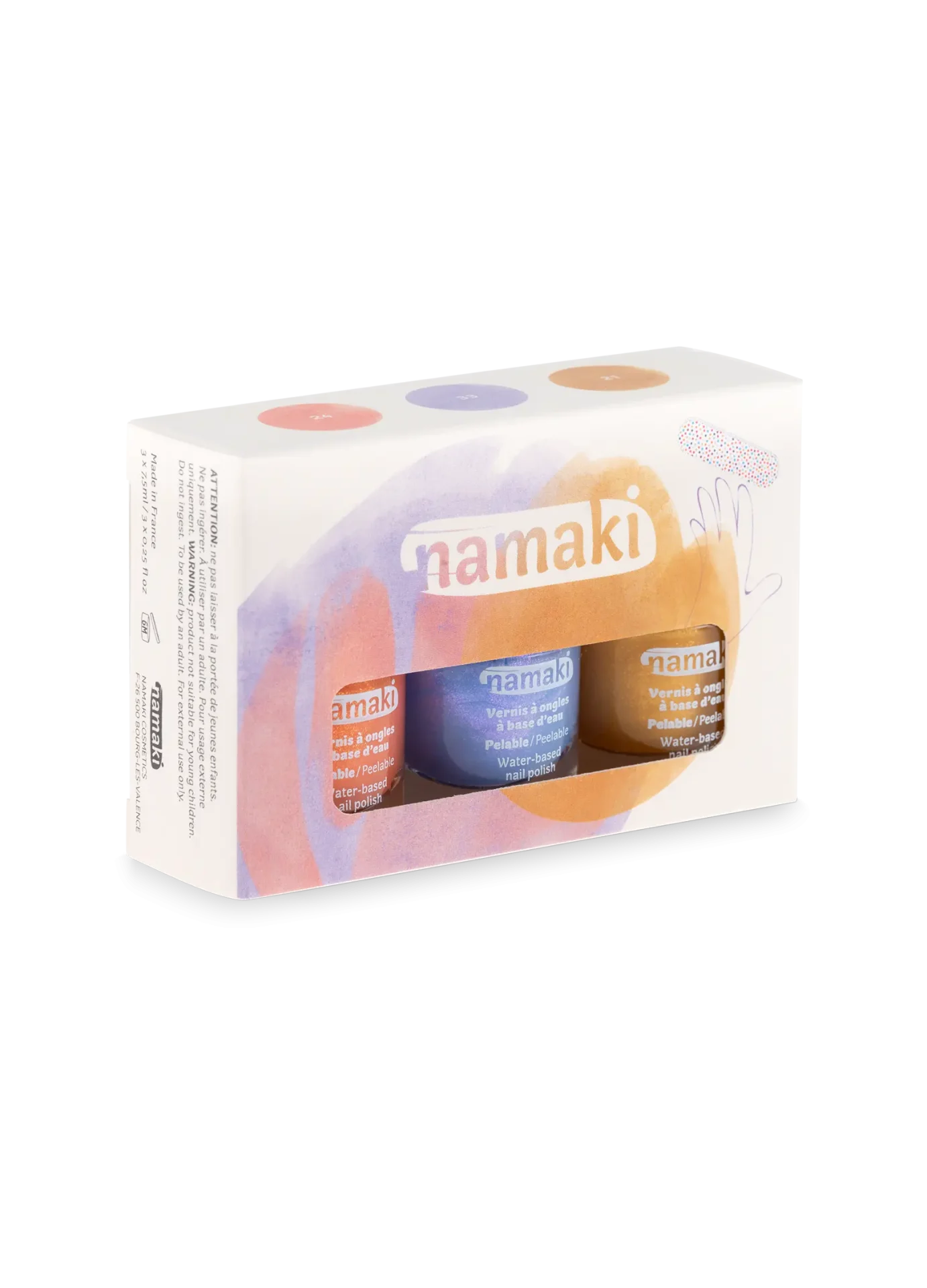 A Namaki körömlakkok vizes bázisúak, vegánok, és gyerekek számára fejlesztett formulával készülnek – teljesen mentesek a káros anyagoktól (nincs benne paraben, formaldehid, ftalát, toluol vagy kámfor). 🌿