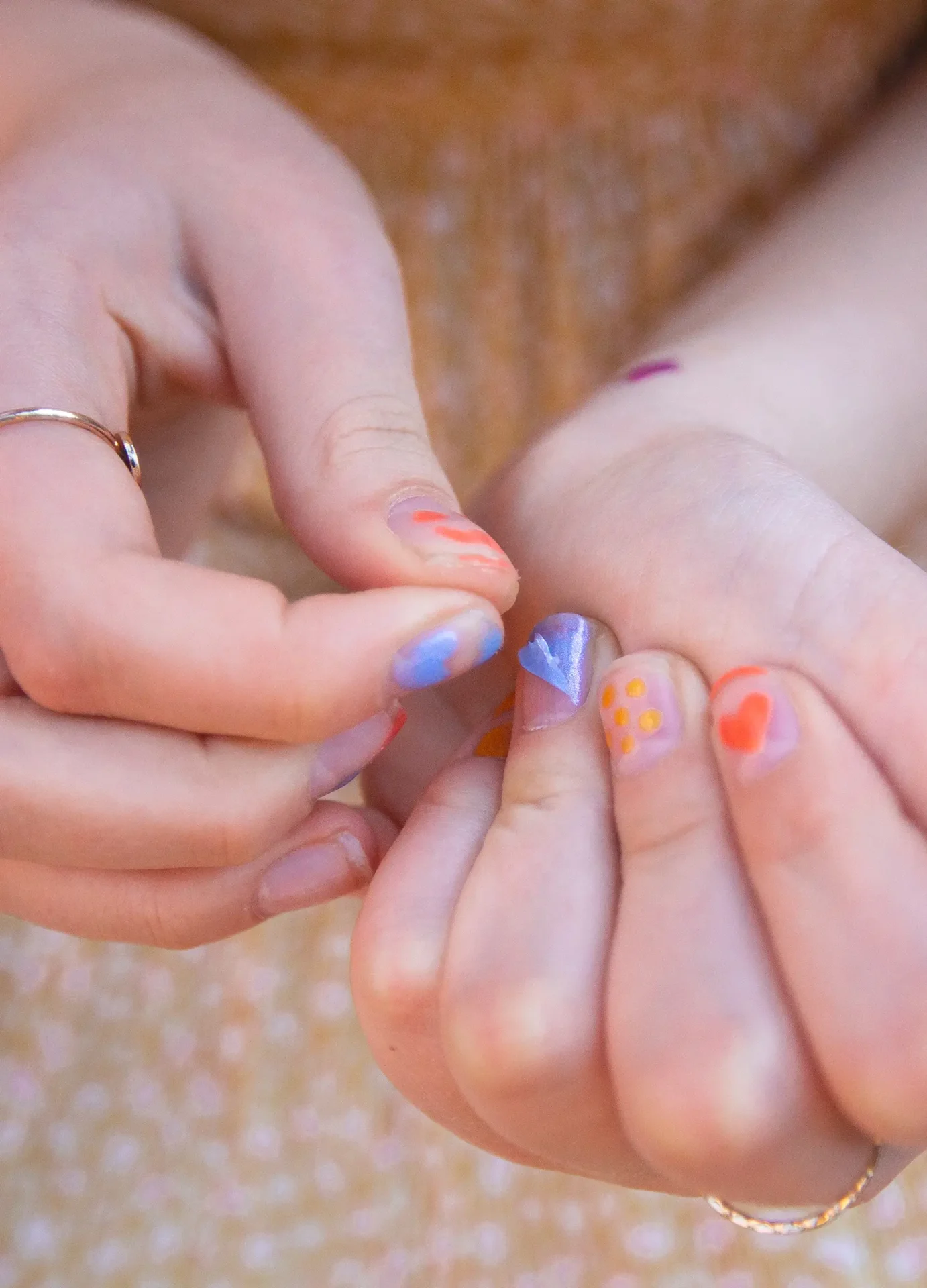 A lakk lehúzható, tehát nem kell körömlakklemosó: amikor a gyerek megunja, egyszerűen lehúzza a körméről, mint egy matricát. 🙌