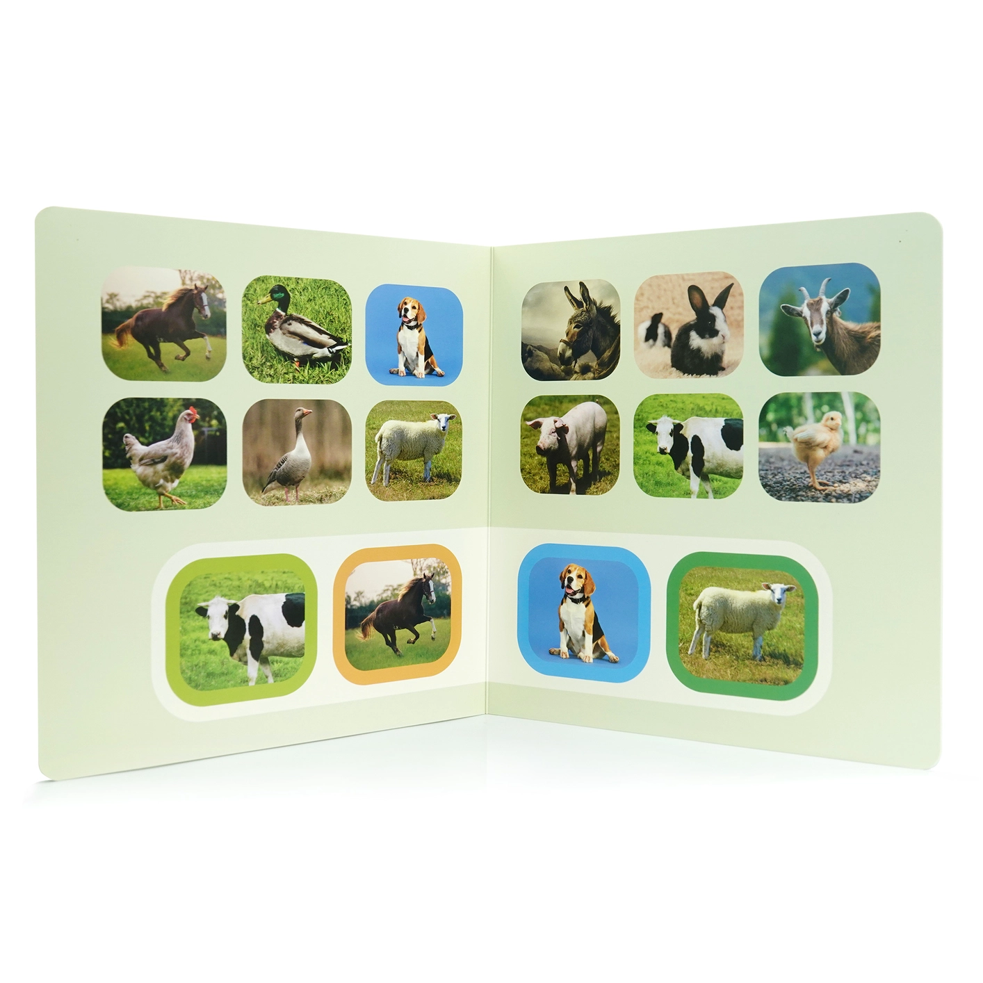 Fedezzétek fel együtt a Keress és találj könyvet a tanya állataival – egy fotó-alapú keresgélős kalandot a farm legizgalmasabb lakói között! 🌾🐮 A könyv minden dupla oldalpárján valódi fotókat látsz, és a gyerekeknek meg kell találniuk 4 állatot a 12 közül – izgalmas „keresd meg!” feladat minden oldalon.