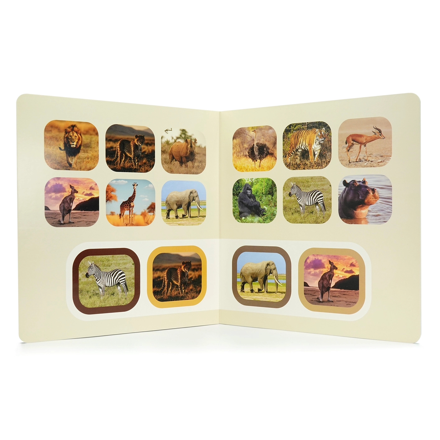- 📸 Valódi vadon élő állatfotók – nem rajzok, így valós kapcsolódást ad