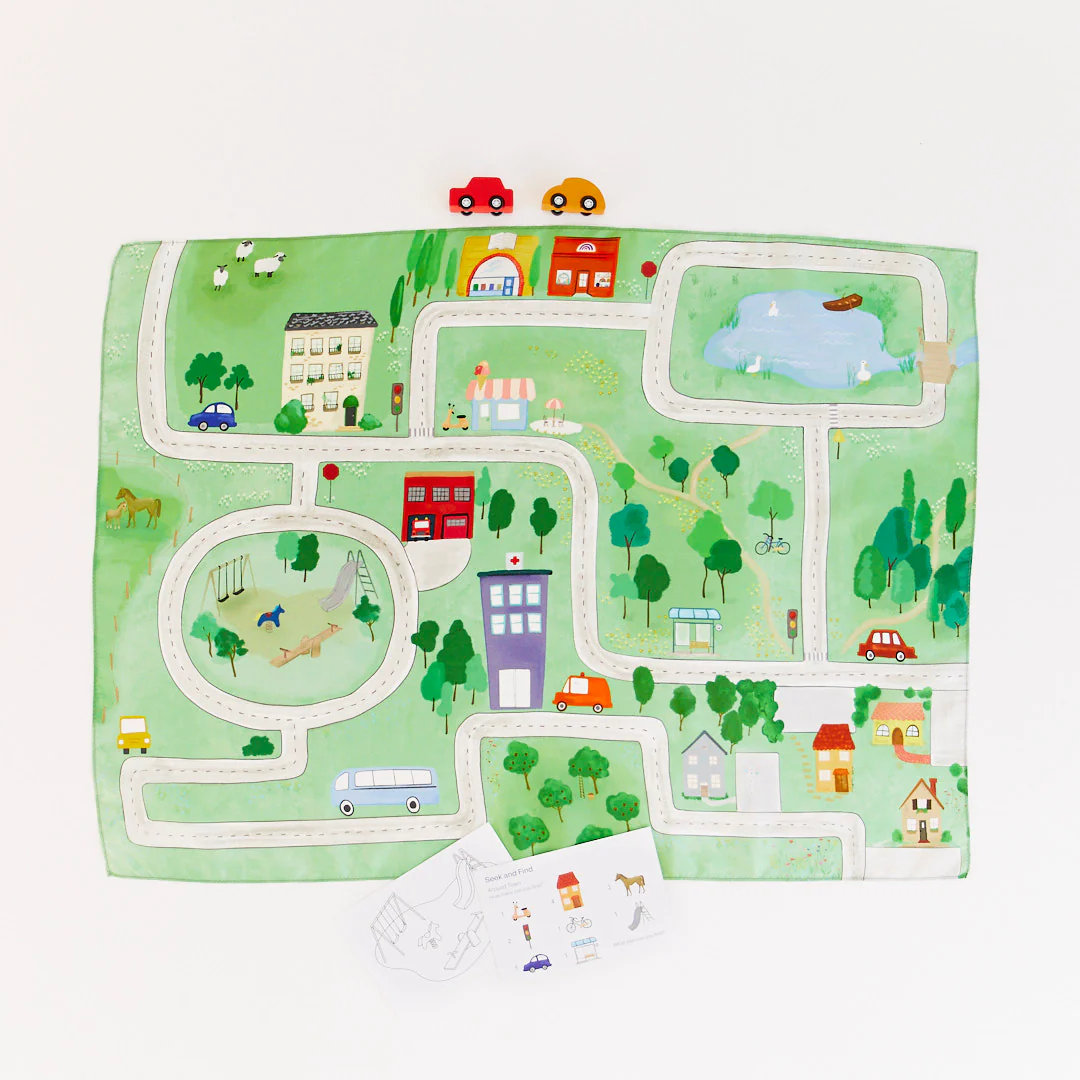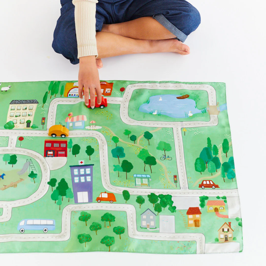 A Sarah’s Silks Playmapek a gyerekek fantáziájának végtelen terepei. 🌈 Kézzel festett, 100% tiszta mulberry selyemből készült kendők, amelyek különböző témákkal – például erdő, tenger, város vagy hegyvidék – varázslatos alapot kínálnak a szabad játékhoz.