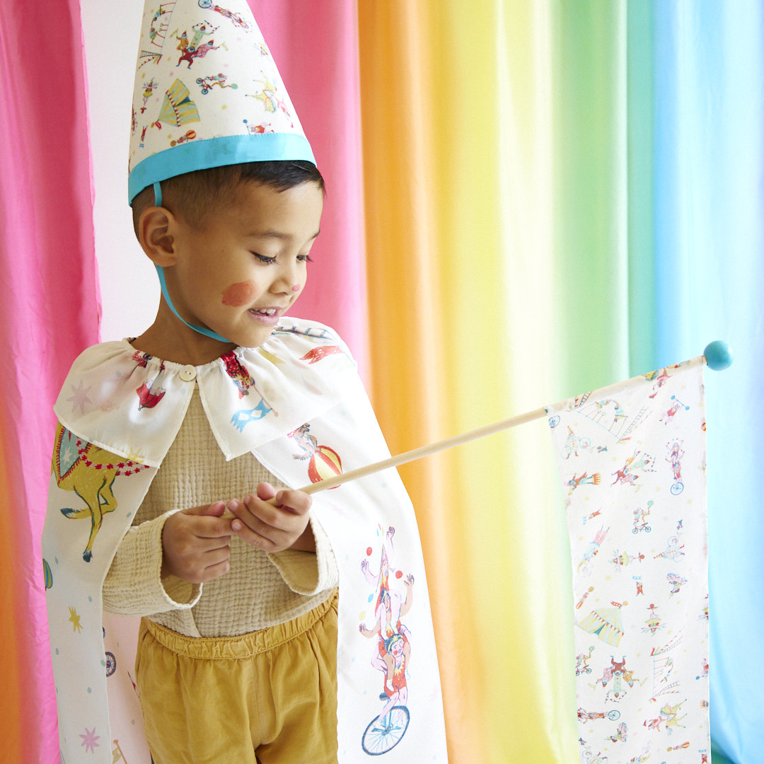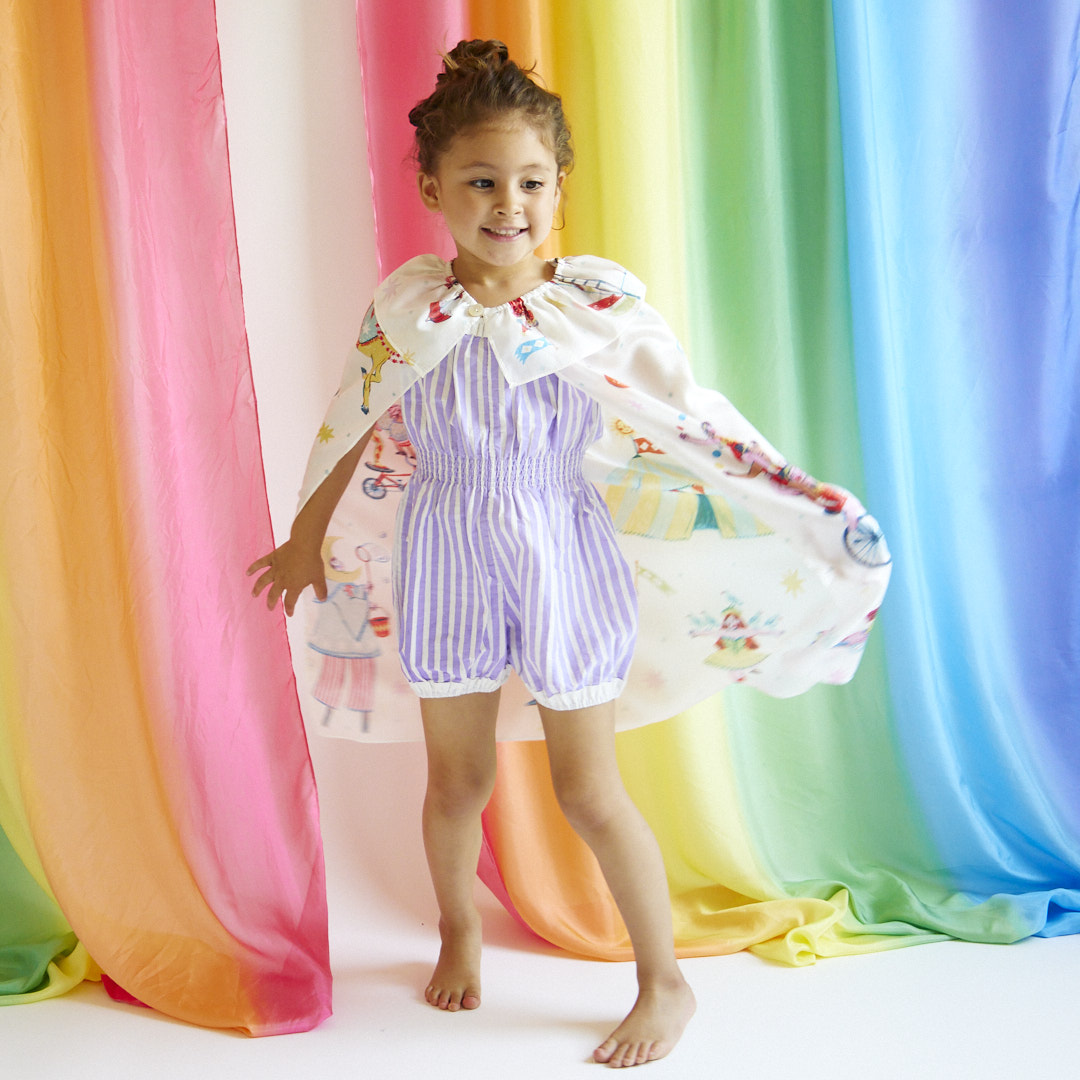 Ez a gyönyörű selyemköpeny a beöltözős- és szerepjátékok alapeleme. Selymesen puha, mégis tartós, nehéz selyemből készült. A rugalmas nyakpánt és a kagylógomb megkönnyíti a köpenyek fel- és levételét a gyermekek számára.