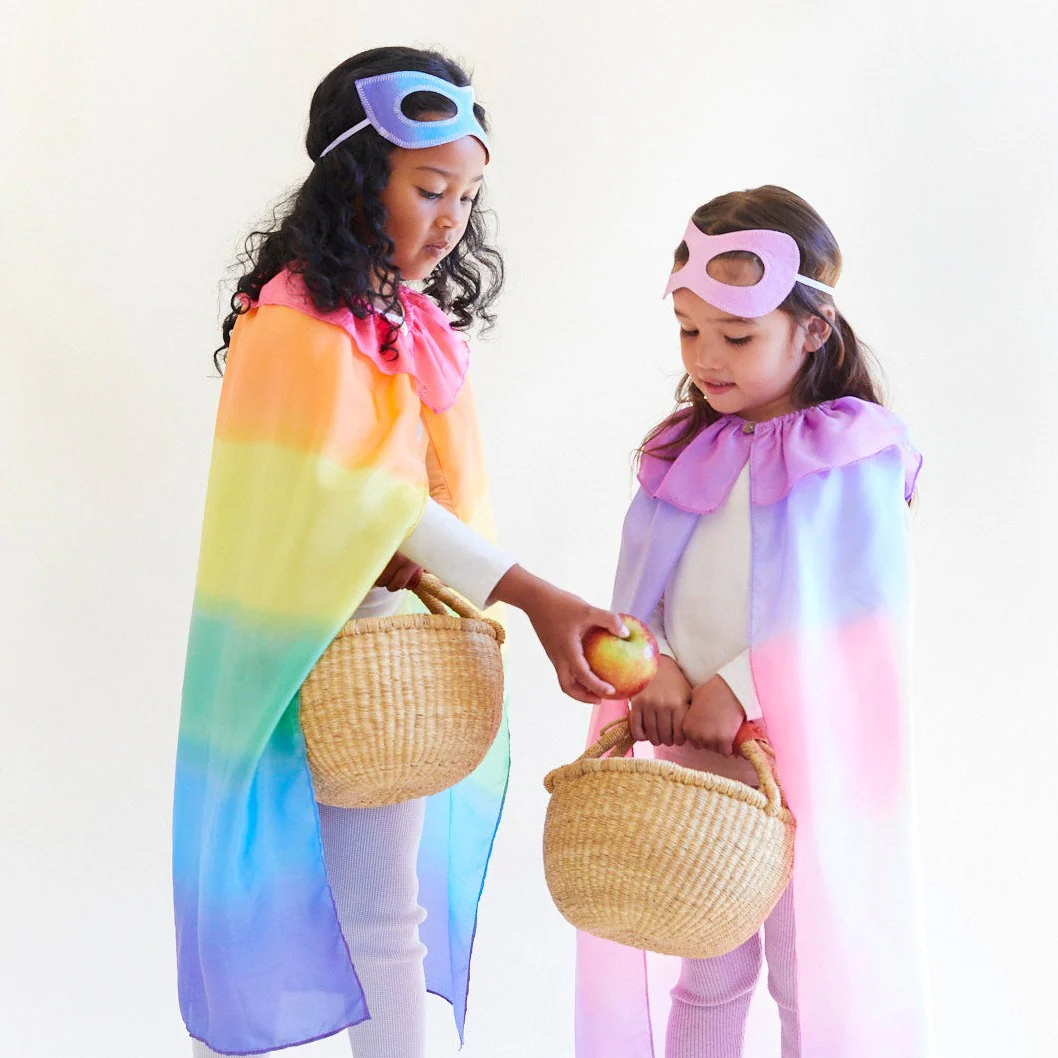 Ez a gyönyörű selyemköpeny a beöltözős- és szerepjátékok alapeleme. Selymesen puha, mégis tartós, nehéz selyemből készült. A rugalmas nyakpánt és a kagylógomb megkönnyíti a köpenyek fel- és levételét a gyermekek számára.