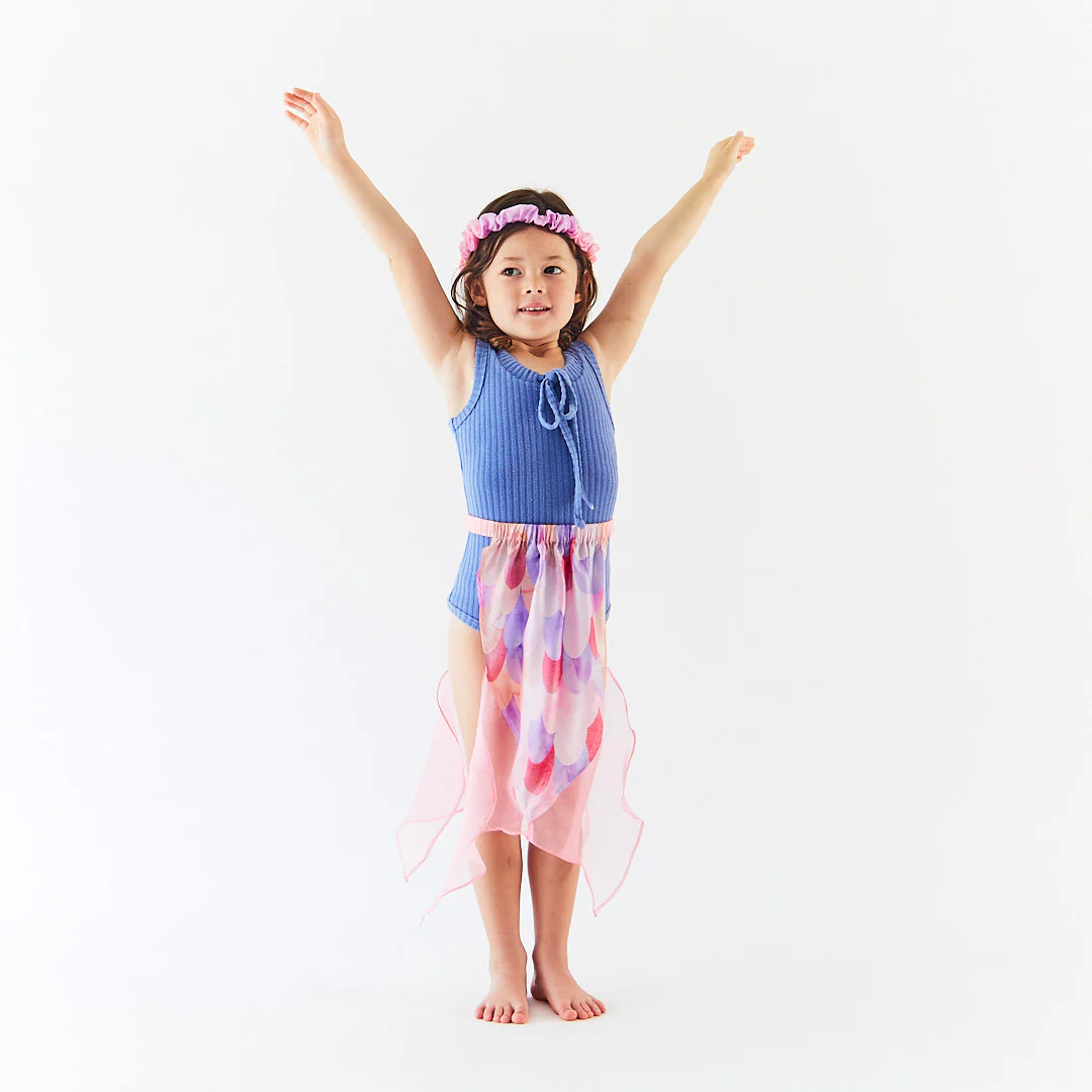 Bátran csobbanjatok a mesék tengerébe! Egy ragyogó sellőszoknya, amely álomszerű beöltözős élményt hoz minden játékkal töltött pillanatba.