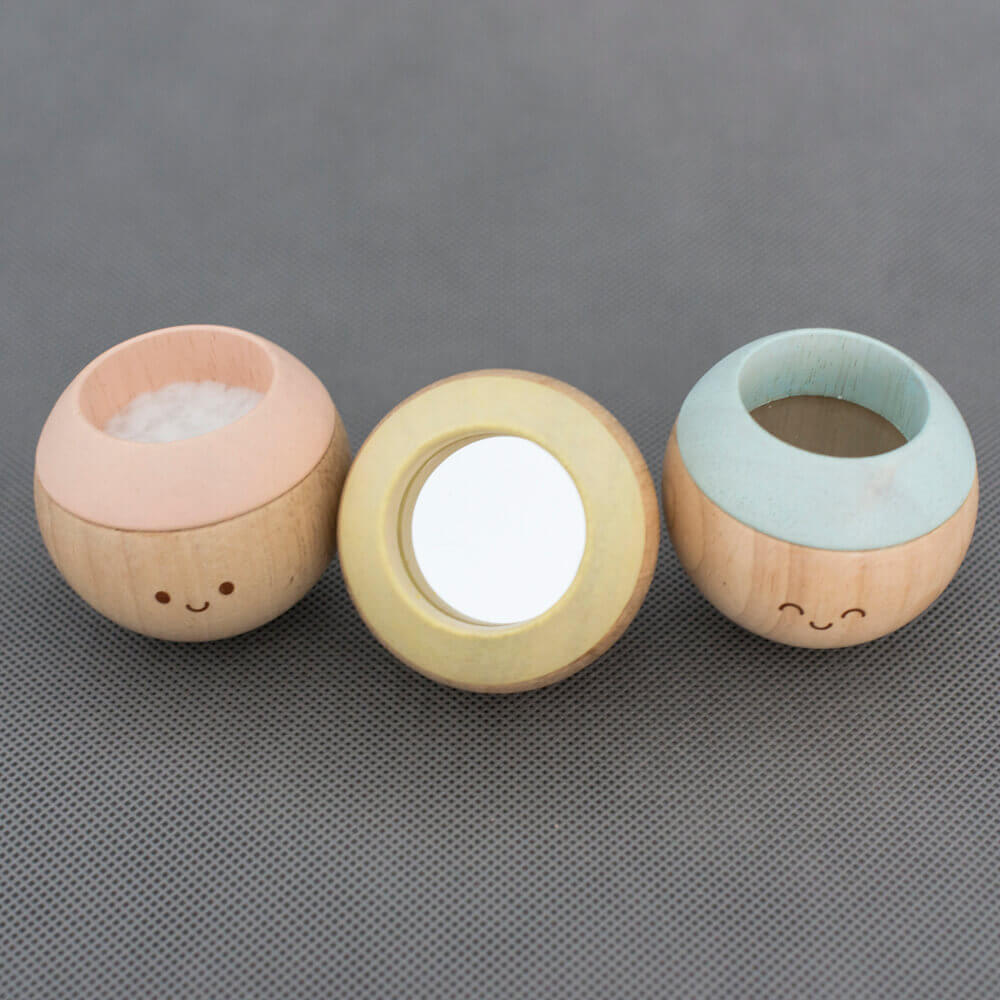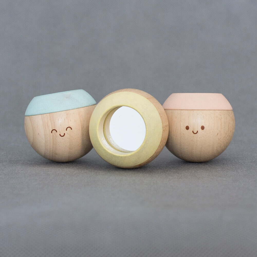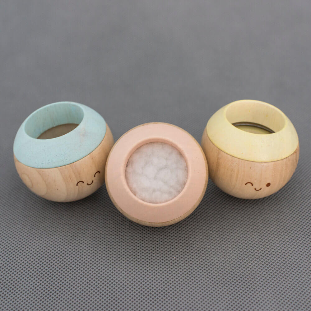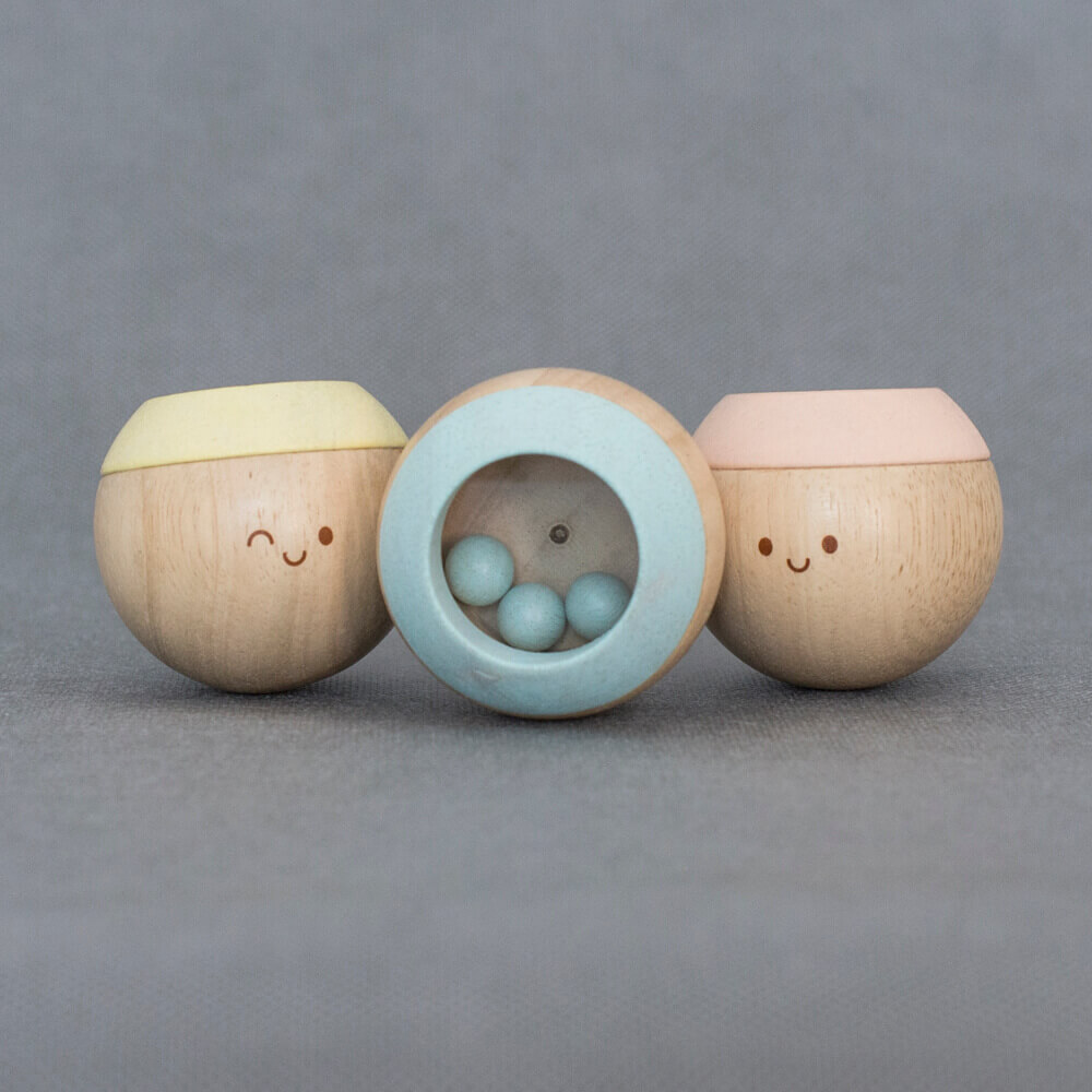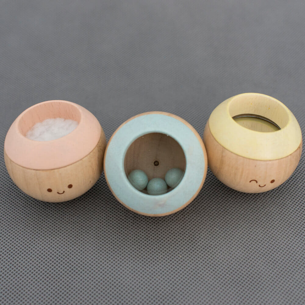 A golyók méretéből adódóan a baba könnyen meg tudja fogni, rázni, tapogatni, szemügyre venni.
