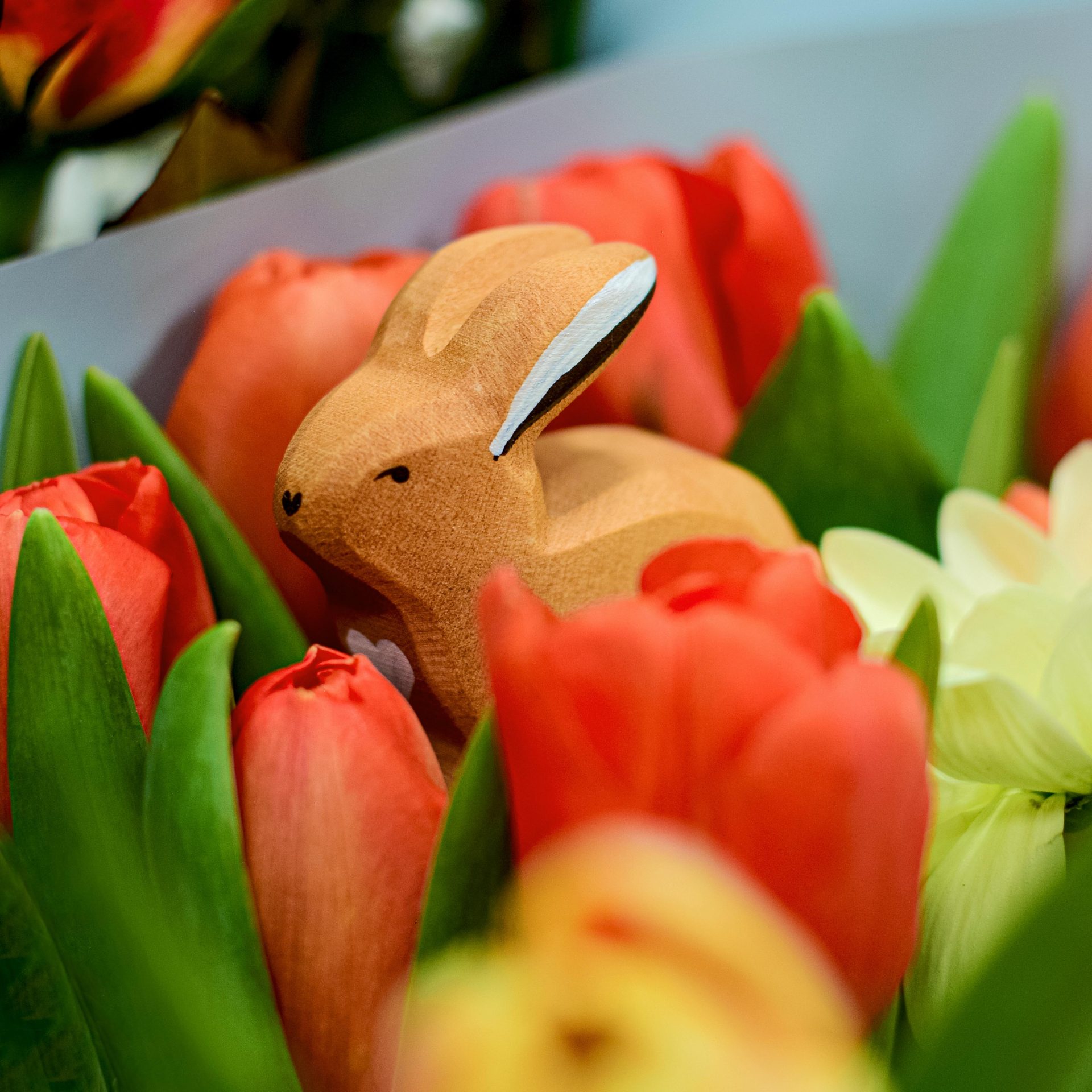 Ez a kedves üldögélő nyuszi remek része lehet bármelyik gyerekszobának vagy Waldorf évszakasztalnak.
