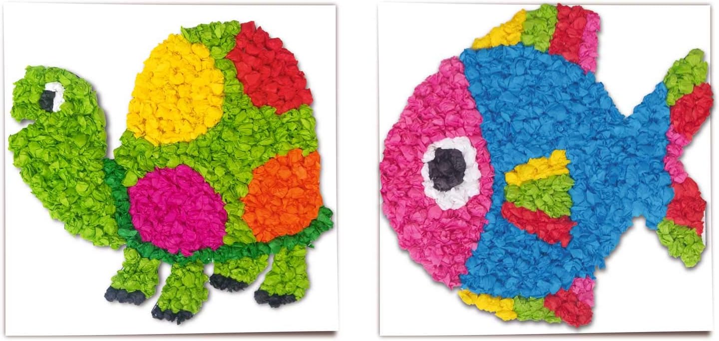 Készítsetek kedves állatos színes papírgalacsinképeket ezzel a szettel. A csomagban 6 db fotókartont találtok 6 különböző mintával, valamint 200 db selyempapírt, 10 csodás, élénk színben. Remek kreatív elfoglaltság, amivel elkészíthetitek az otthonotok dekorációját, mindemellett fejleszti a finommotoros készségeket. Ha pedig marad a színes selyempapírból, próbáljátok ki a napfényfogó ablakdíszek hajtogatását 😉 A kartonok és a selyempapírok mérete 22,5 x 22,5 cm.