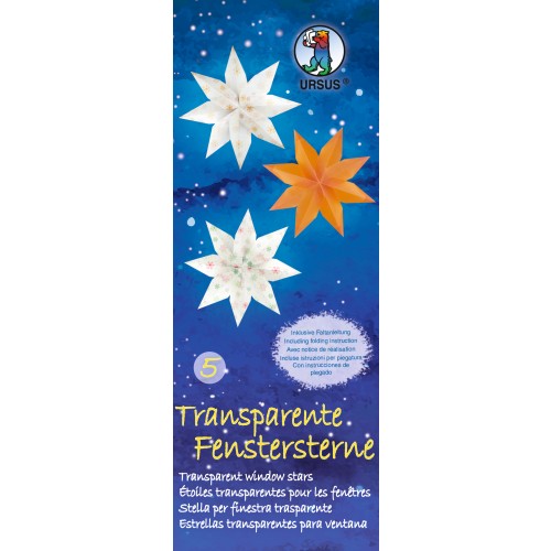 Átlátszó ablakcsillagok az URSUS®-tól 5 meleg színű, téli mintával.